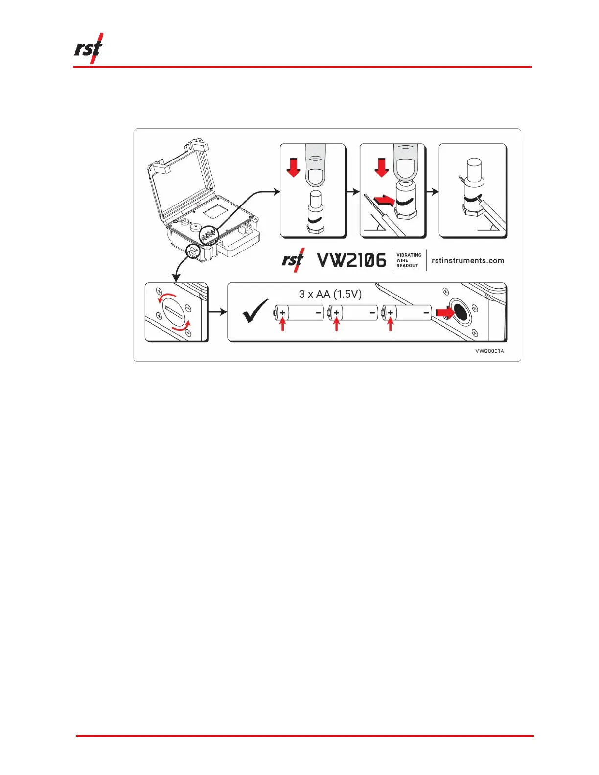 The VW2106 Readout unit can be powered on any time by pressing any key.