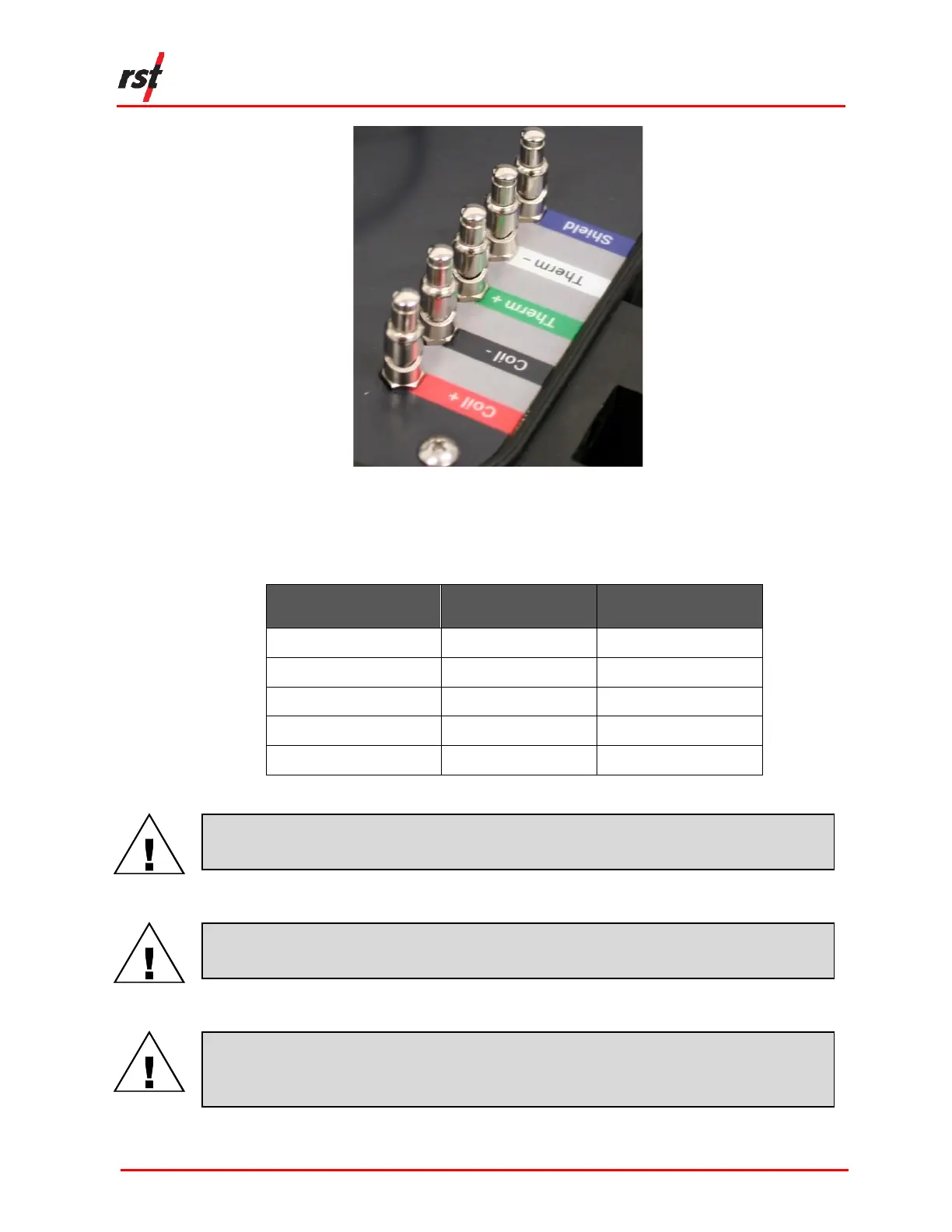 RST VW2106 - Figure 3-1 Terminal Posts; Table 4-1 Standard Wiring Colour Codes