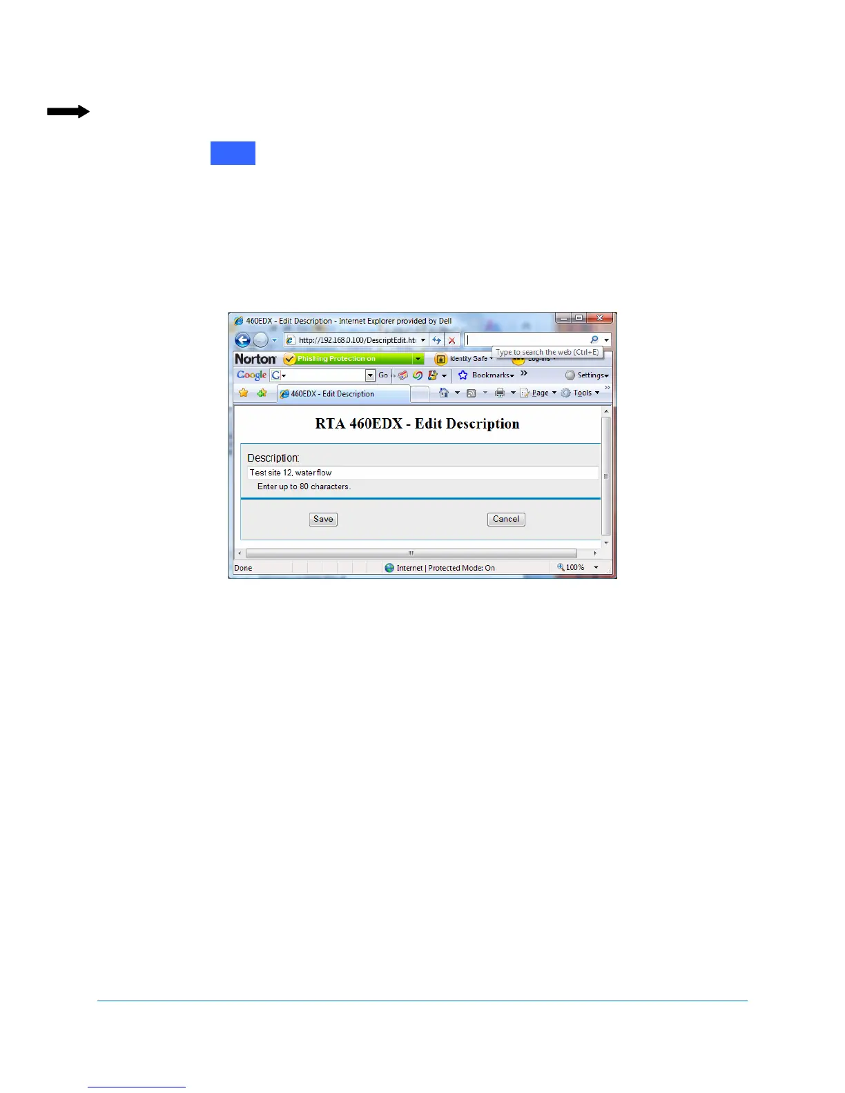 The RTA 460 Edit Description screen displays. See Figure 2-3.