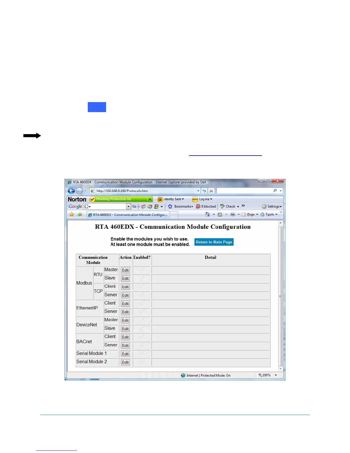 1. Click on next to the Selected Communication Modules on the RTA 460 Gateway