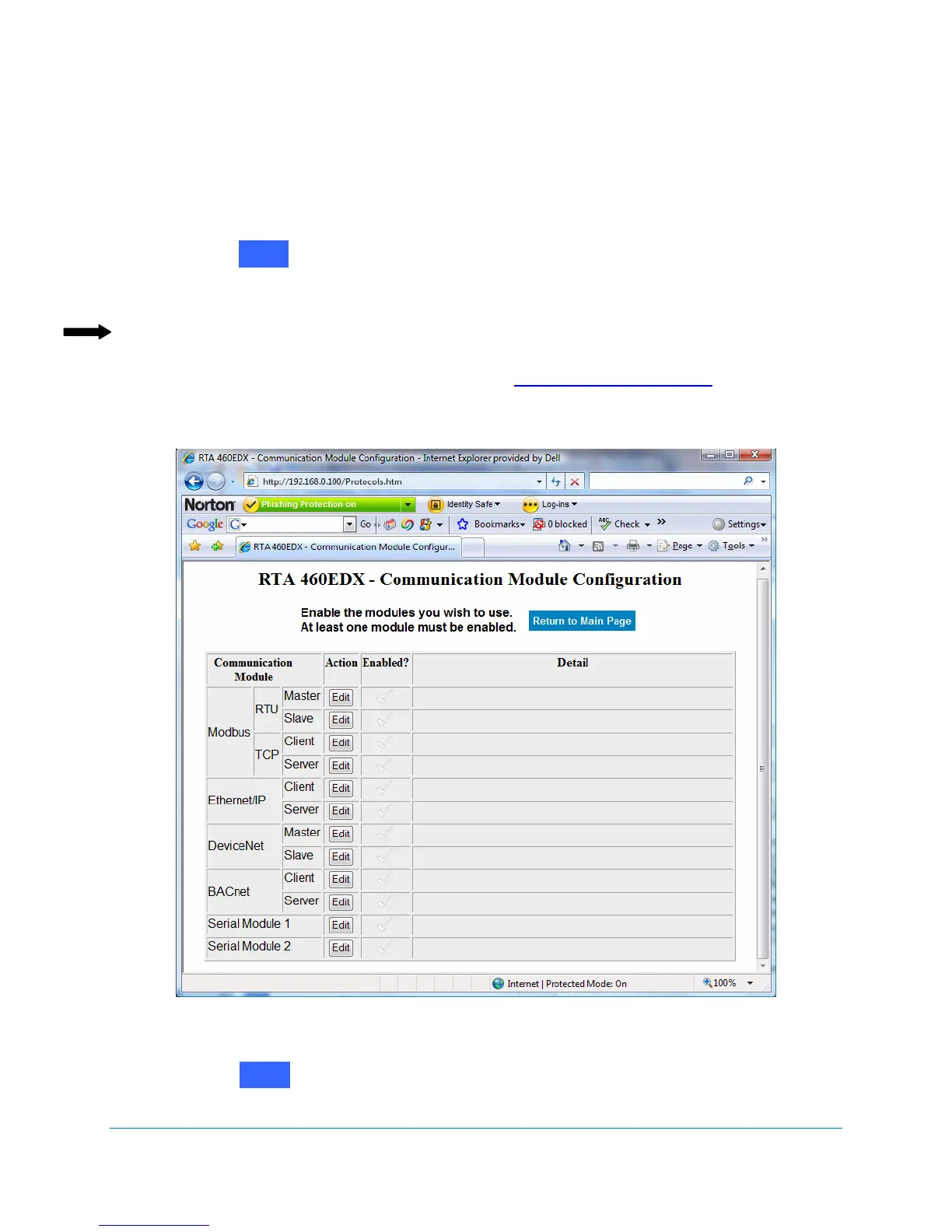1. Click on next to the Selected Communication Modules on the RTA 460 Gateway