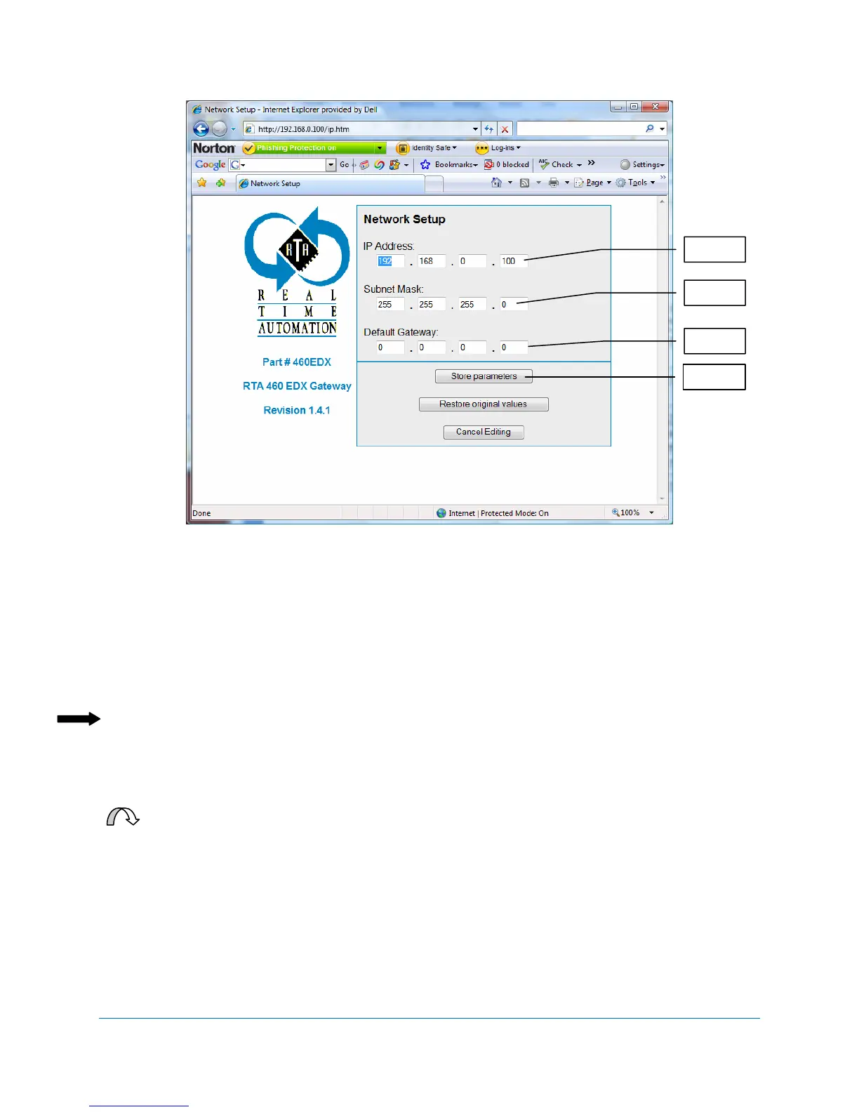 2. Enter the IP address that identifies the 460 Gateway to the network.