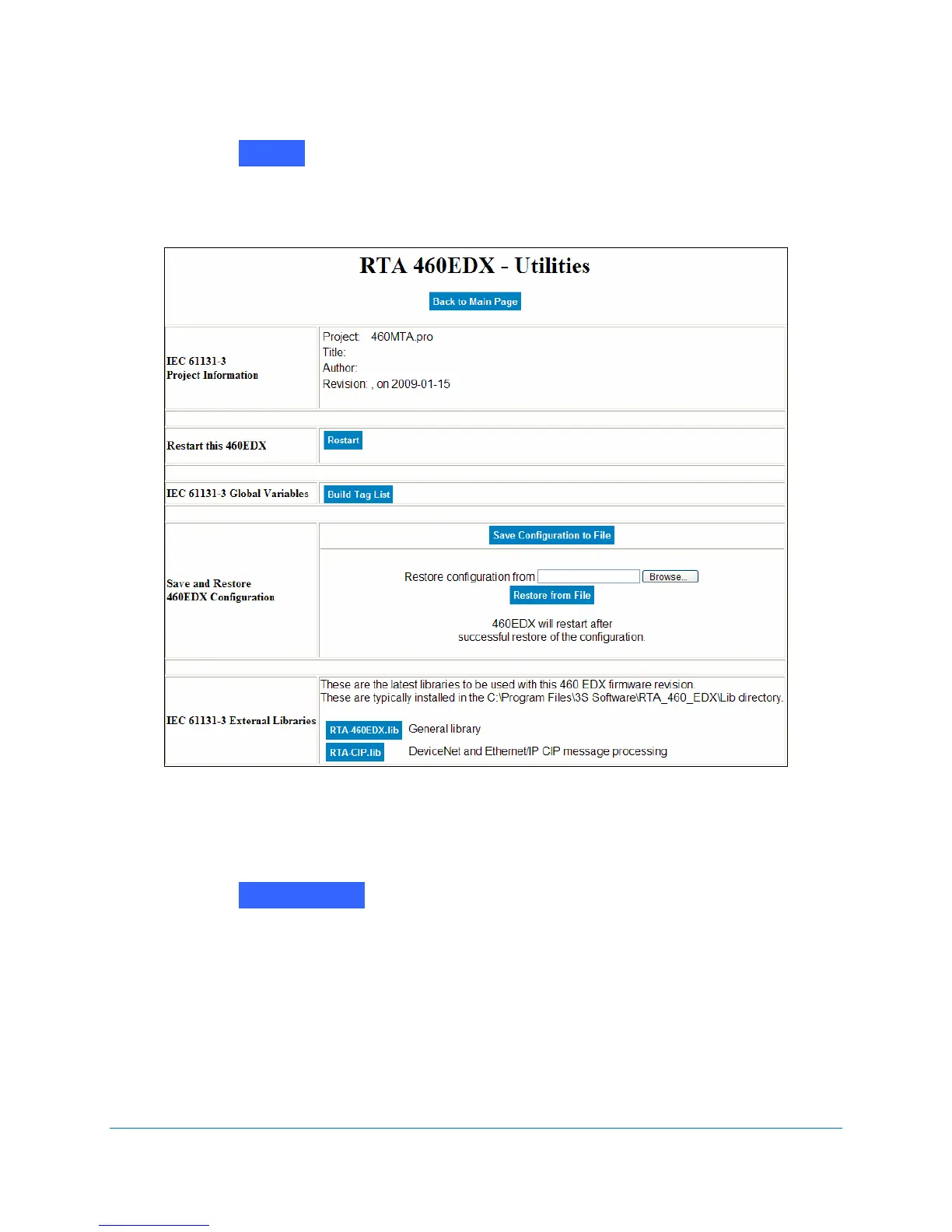 Figure 4-9 RTA 460 Utilities screen