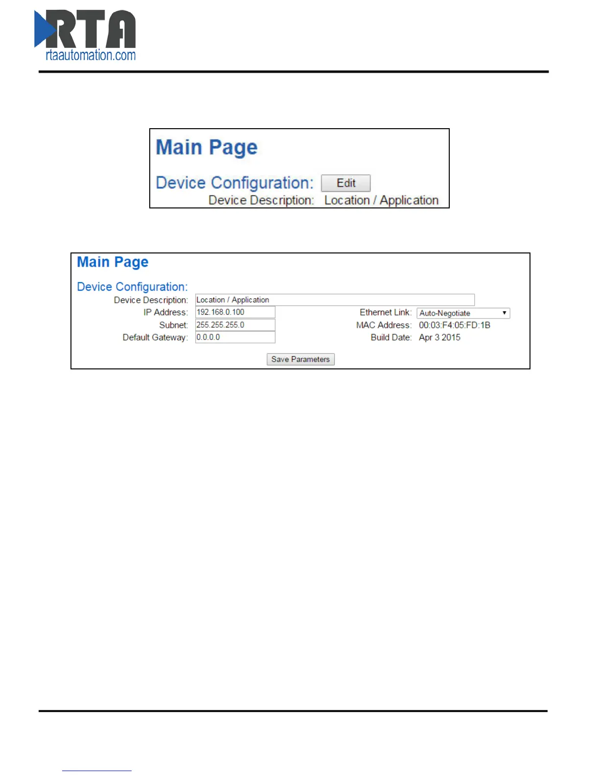 2) This allows you to edit the Device Description, IP Address, Subnet, Default Gateway and