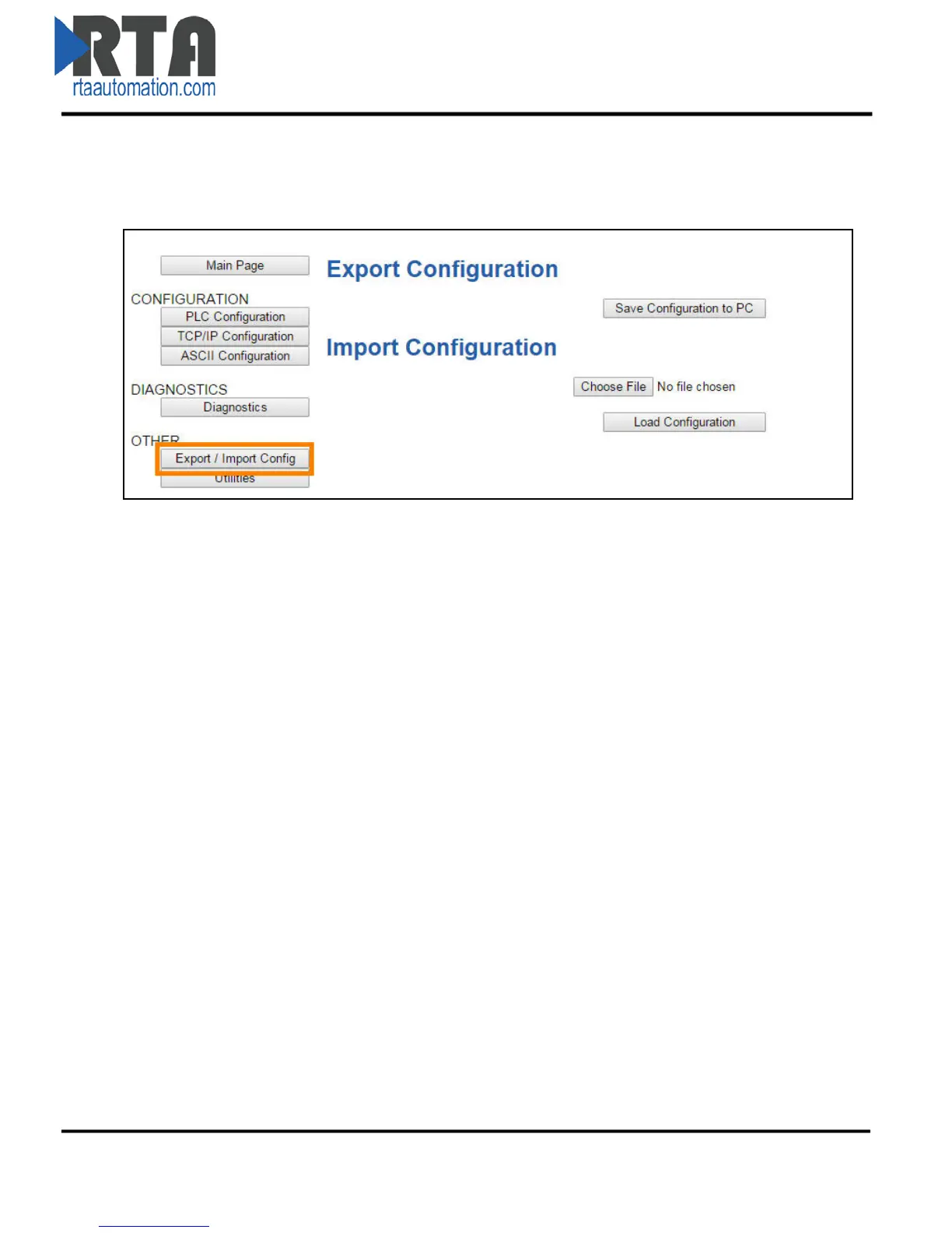 Click the Export/Import Config button under the OTHER section.