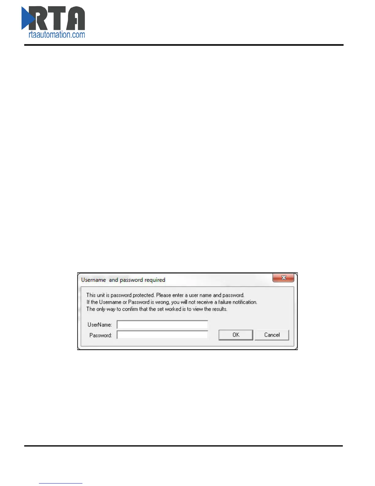 1. Enter a UserName of RTA.