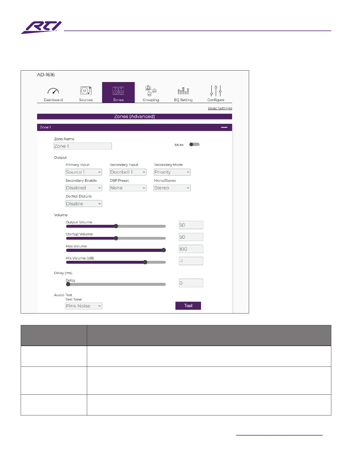 RTI AD-1616 - Zones (Advanced)