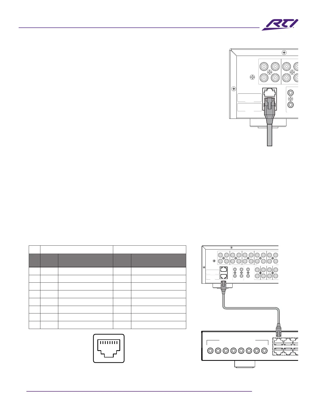 RJ-45 (female) connector port on a compatible RTI processor.