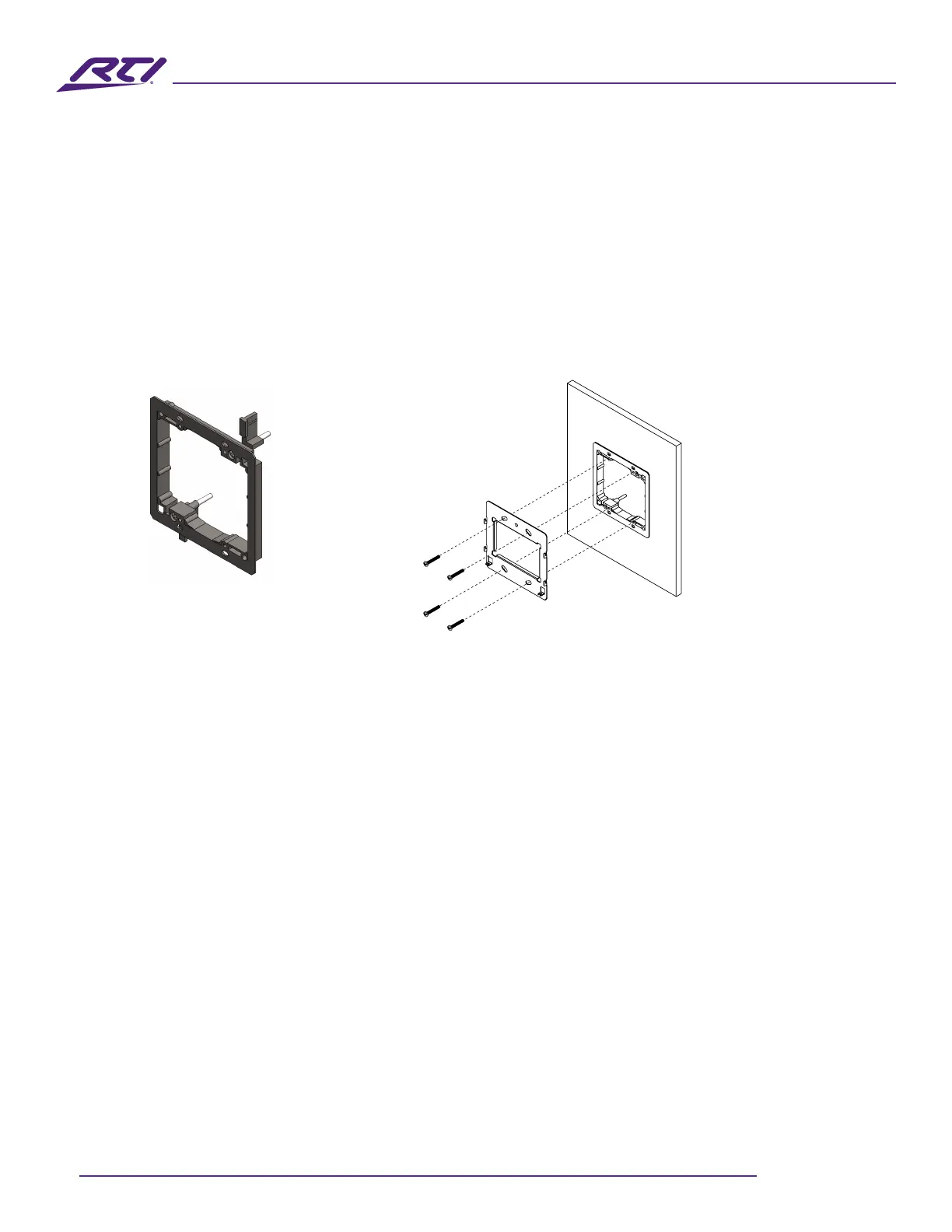 • Use the included screws to mount the bracket onto a two gang low-voltage bracket.