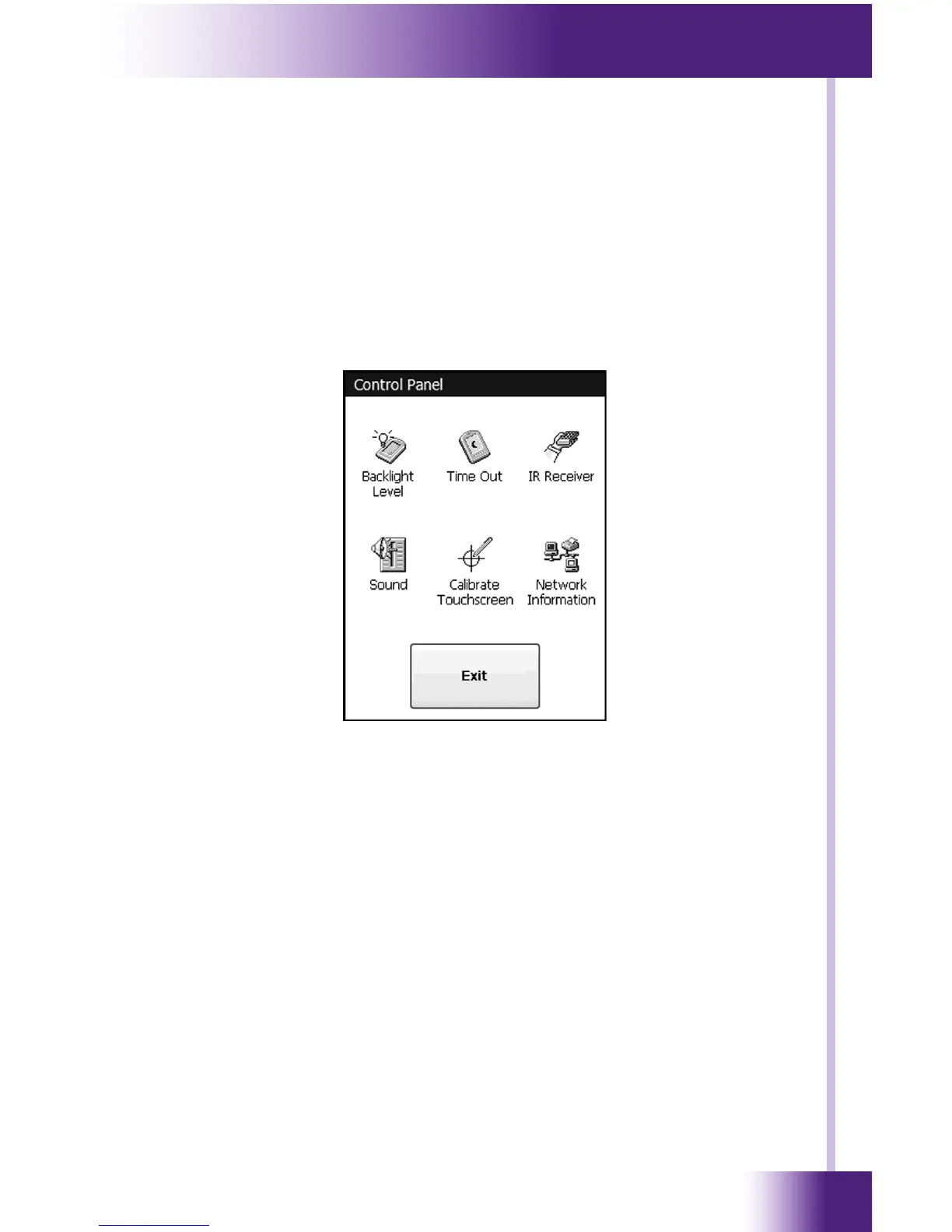 A representation of the Control Panel page is shown below: