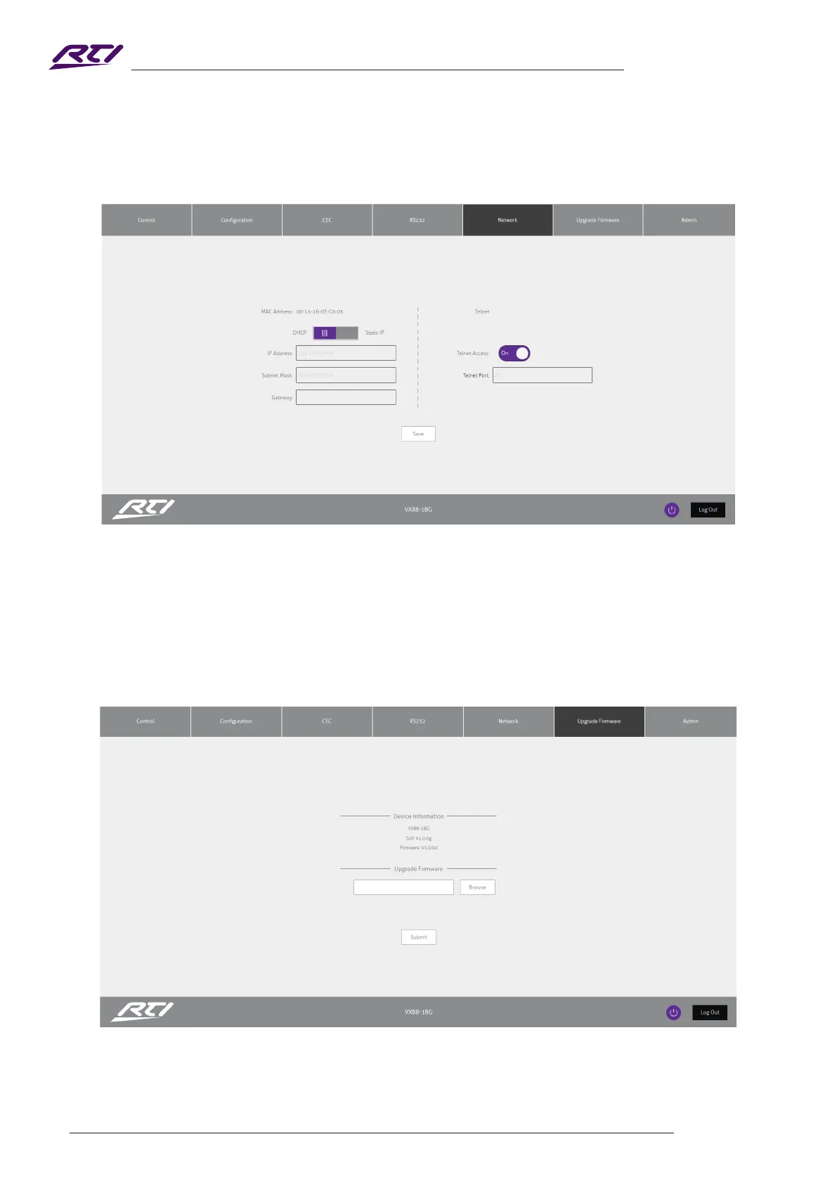 the RTI website). Clicking Submit will send the rmware le to the Matrix and begin the upgrade process. The