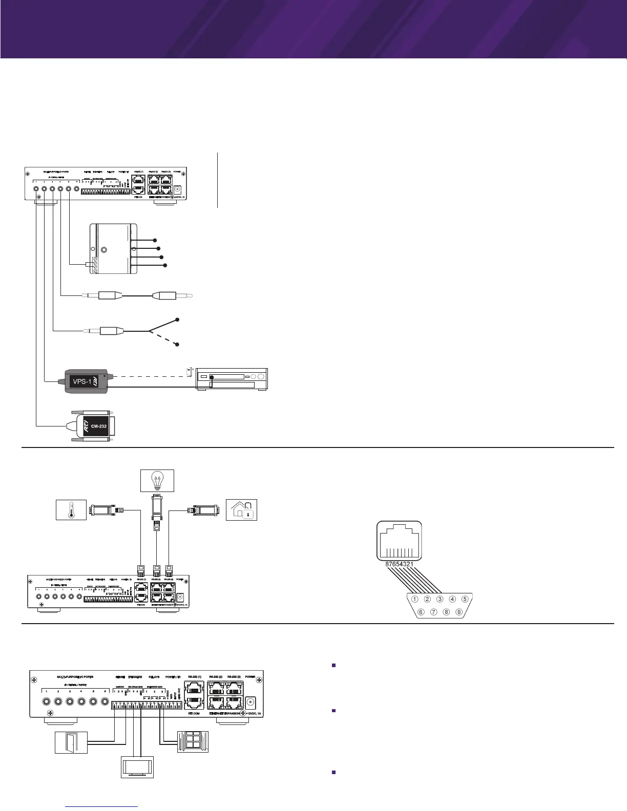 The multi-purpose I/O ports on the XP-6s are compatible with RTI RS-232