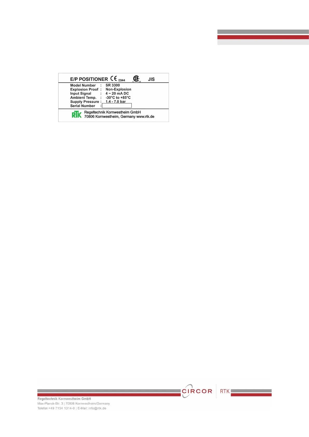 Model: Indicates the model number of the positioner.