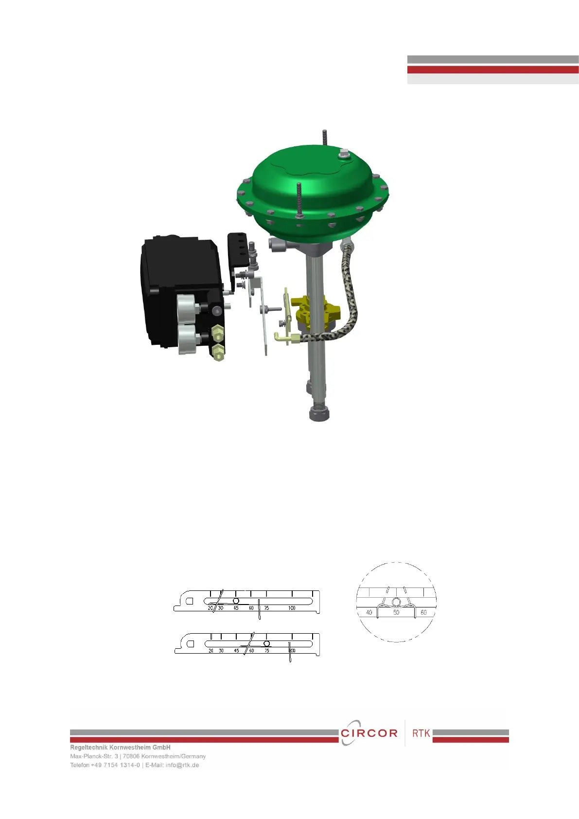6. Check the valve stroke. The stroke marks are indicated on the feedback lever of the positioner. Position the connection