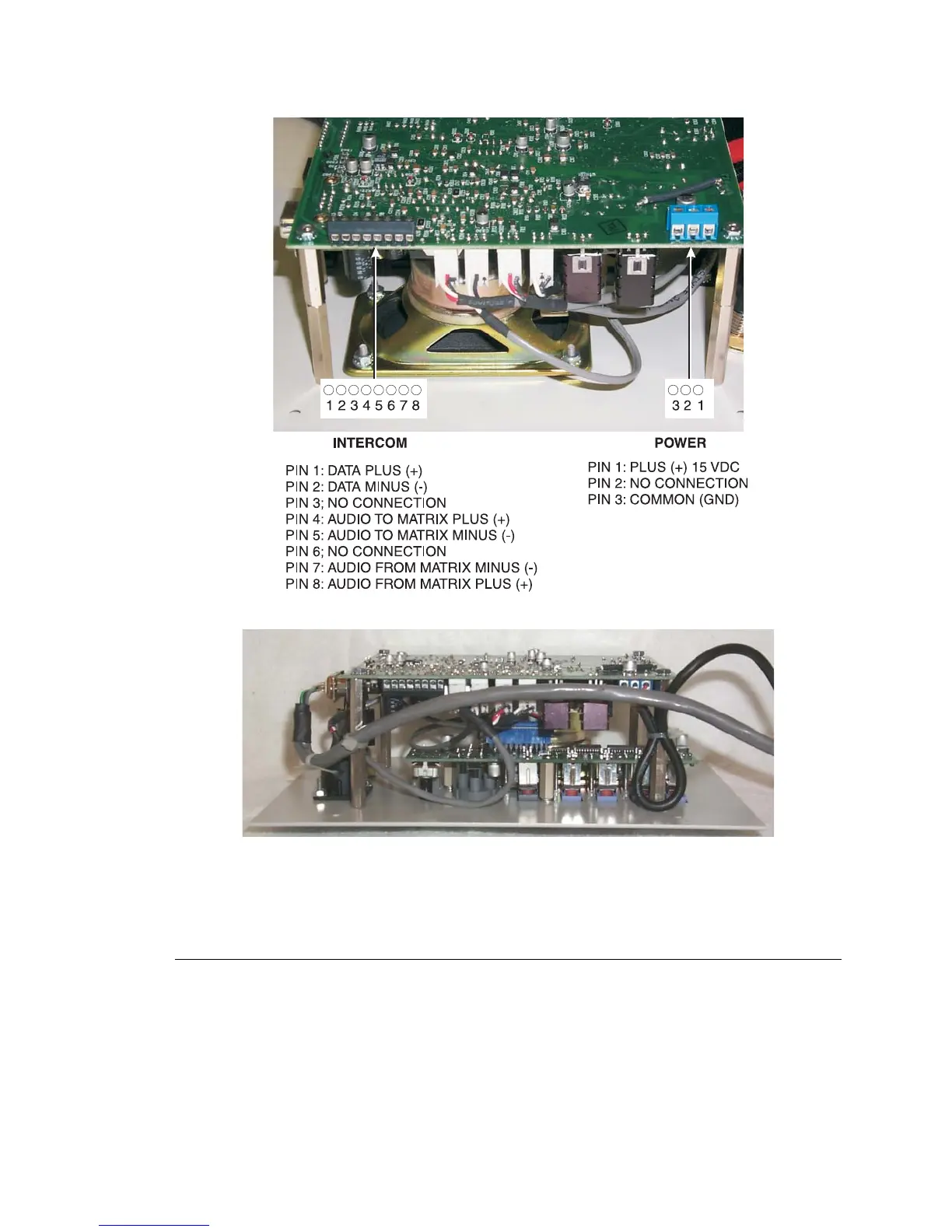 Intercom and Power Terminal Block Pinouts for the TKP-4 / WKP-4.
