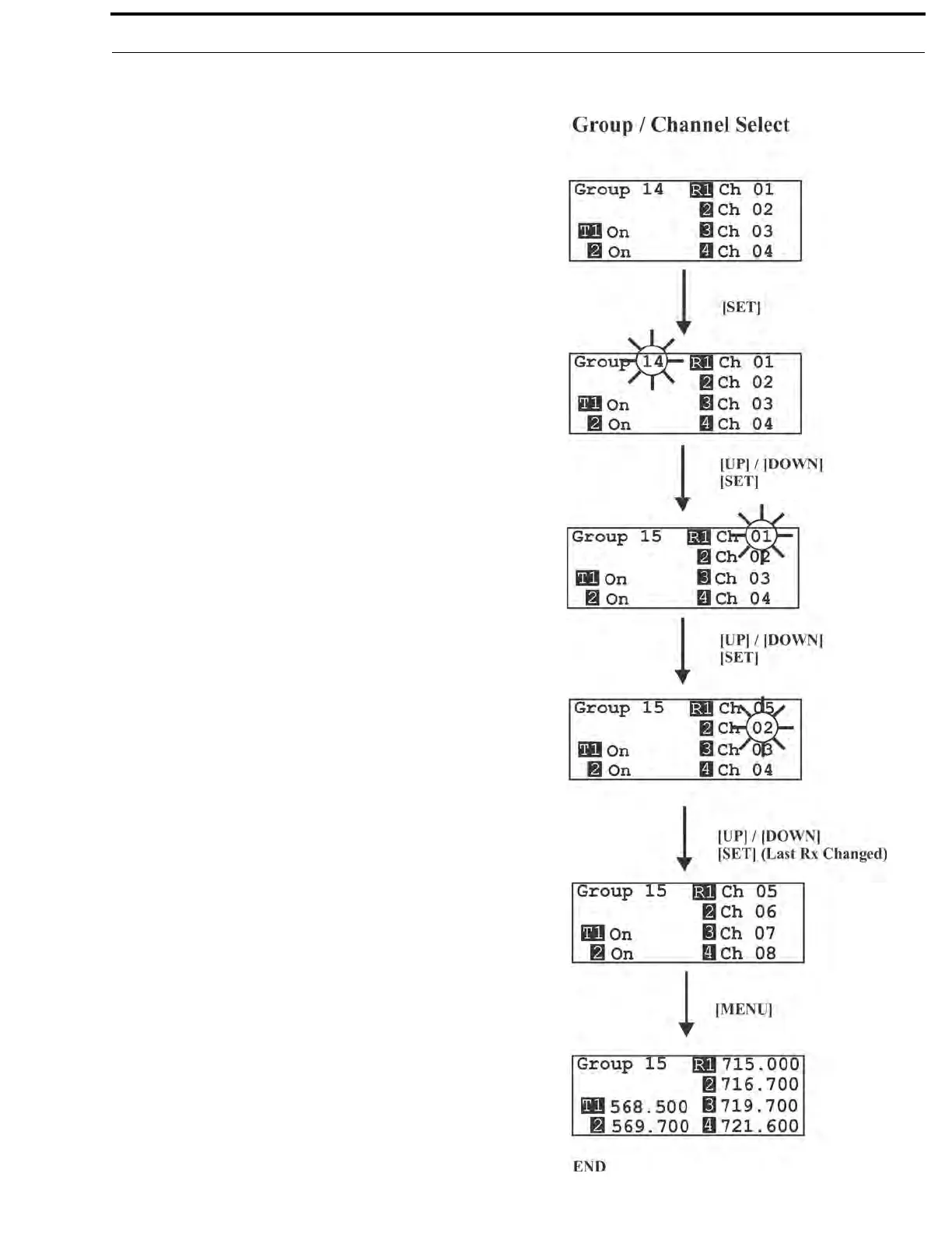 • Press [MENU] once to enter the Group/Channel Select