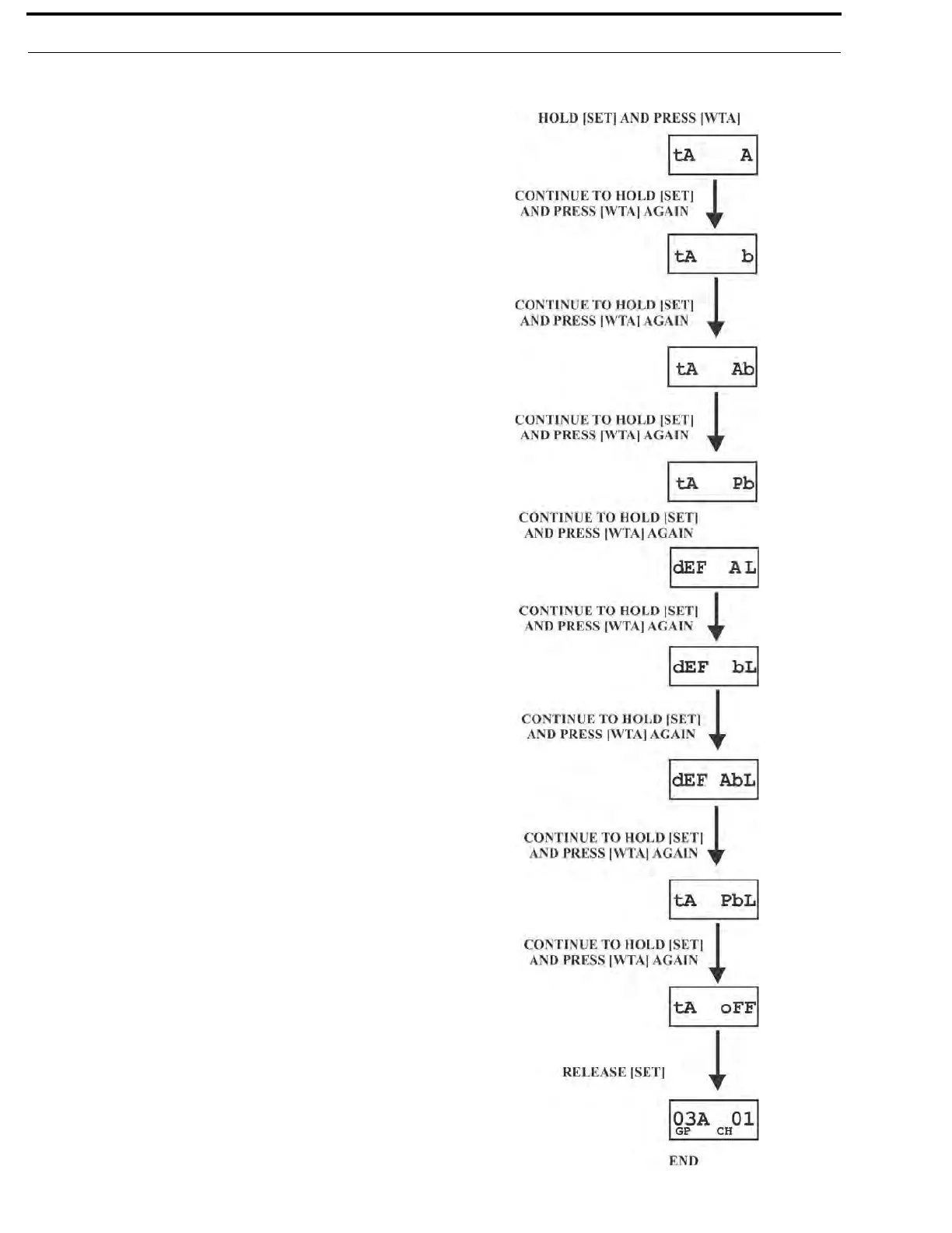 • While continuing to hold [SET] press [WTA] again to go to