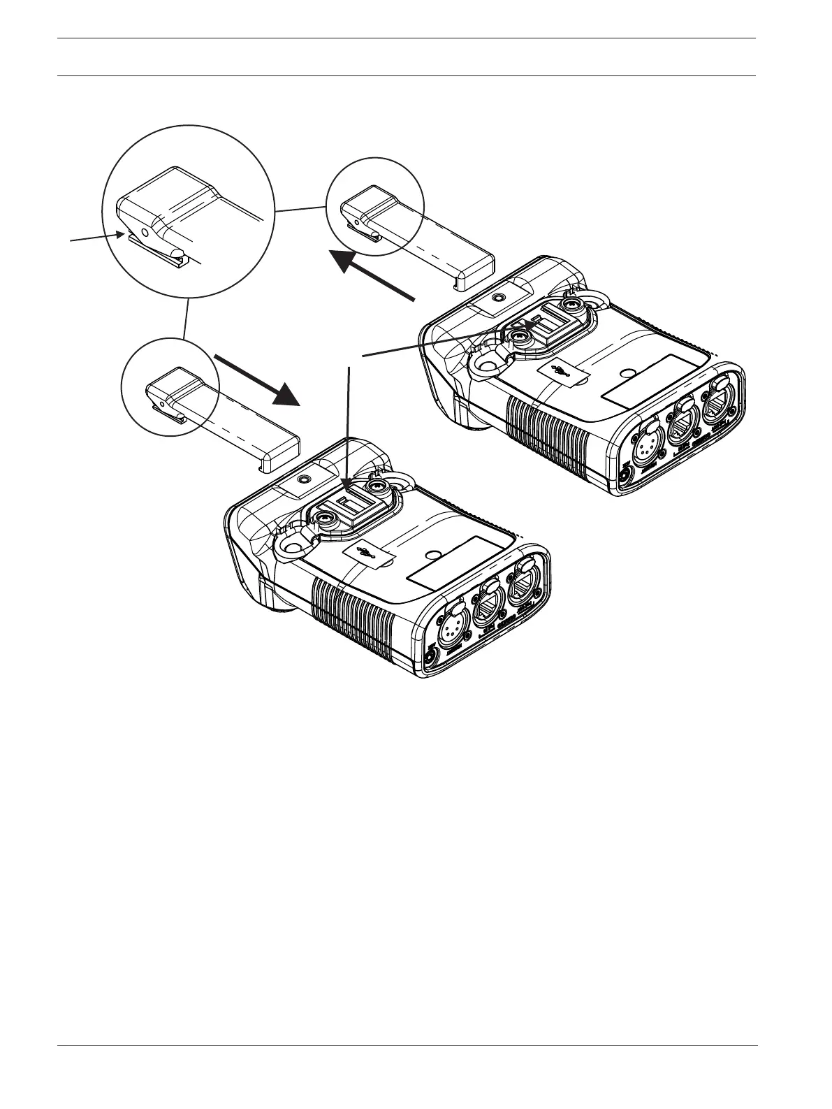 2. With the tension clip up, slide the belt clip out of the belt clip track (2).