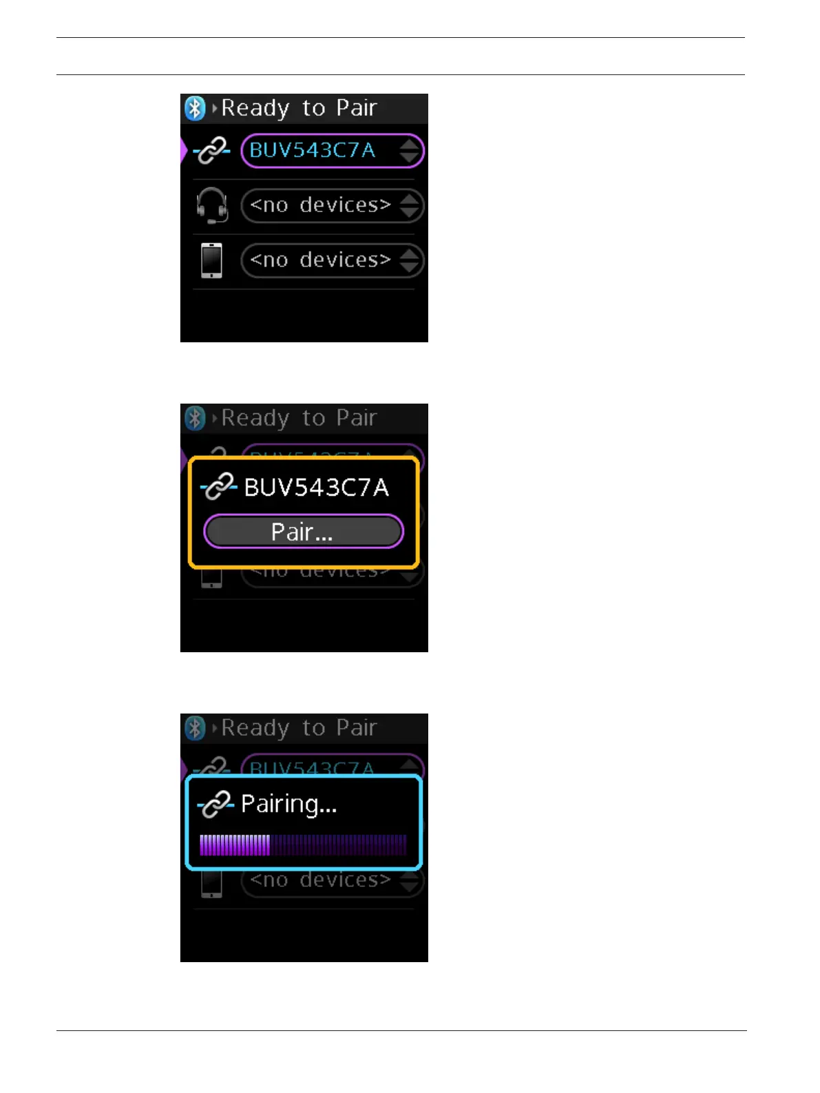 4. Press the SEL/MENU button to select a device for pairing.