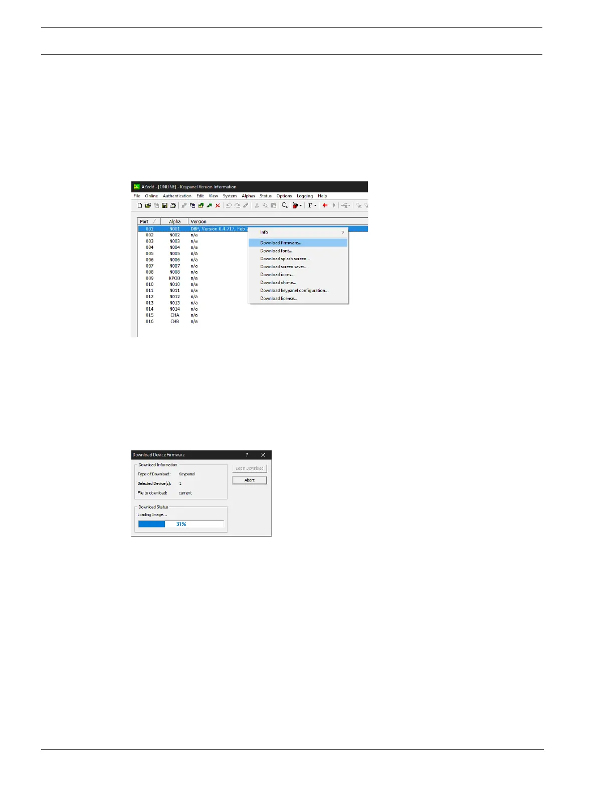 To upgrade the firmware using AZedit, do the following:
