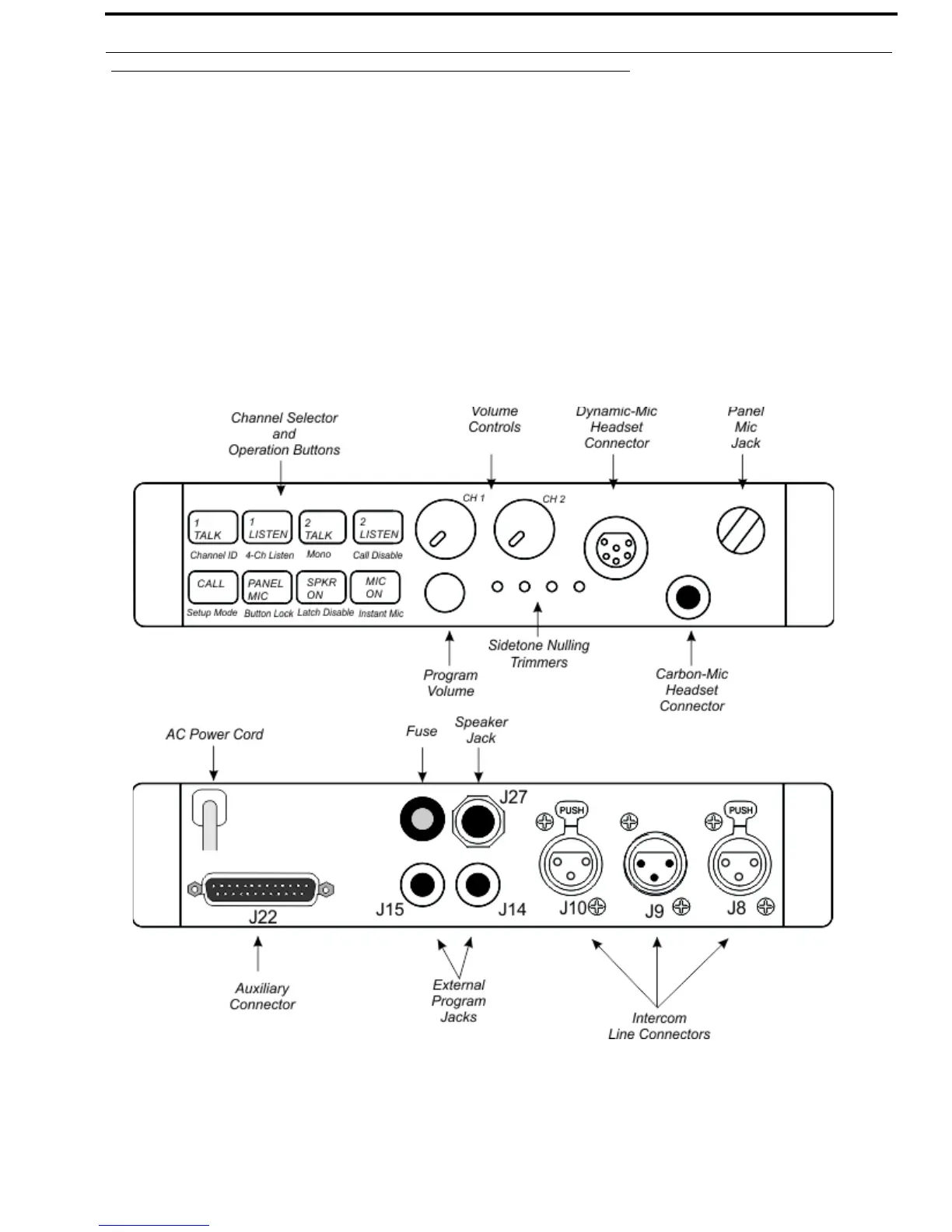 upper-right corner of the front panel. The panel microphone jack accepts specially made gooseneck microphones (MCP-90