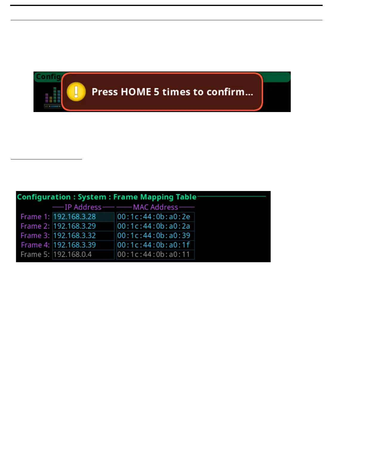 FIGURE 53. Configuration | System | Frame Mapping Table