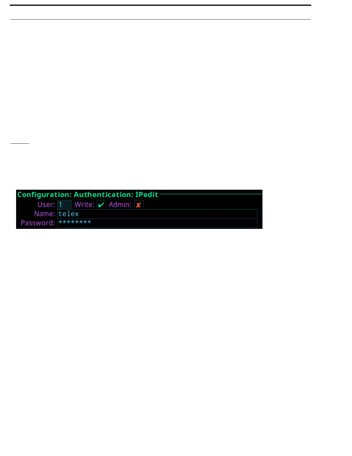 The IPedit Authentication screen is used to define the access privileges (read, write or admin) for each user profile defined. When