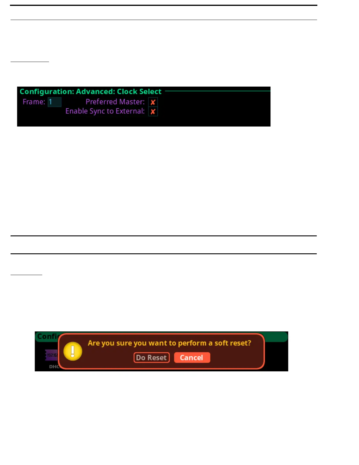 The Clock Select screen is used to configure the word clock used to synchronize audio across the frames in an intercom system.