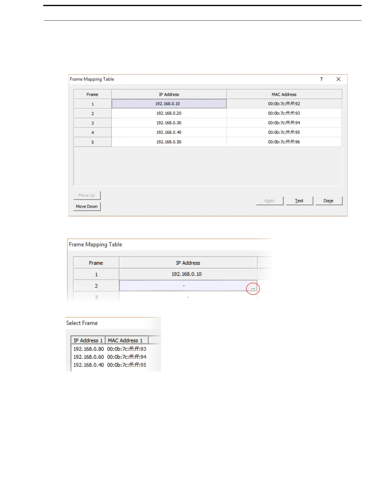 3. Select the frame to add to the frame mapping table.