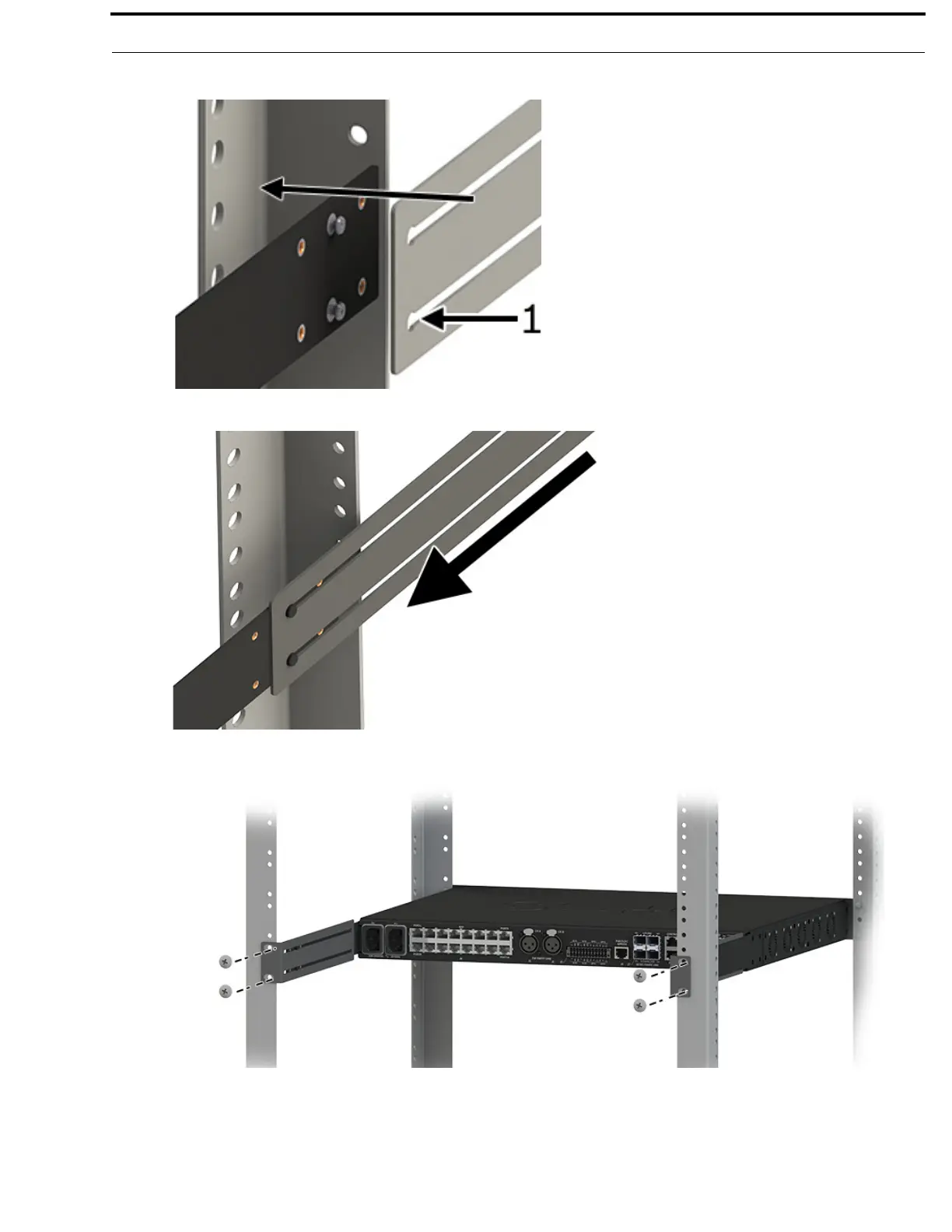 5. Using four rack screws (not supplied), secure the rear side brackets to the rear rack posts.