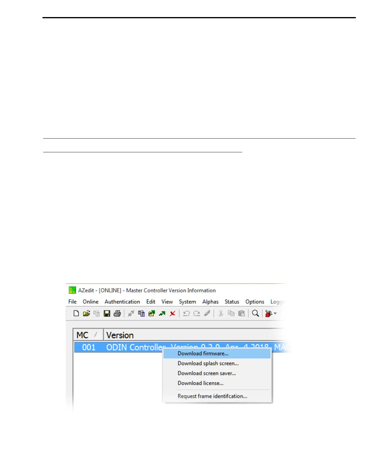 There are two processes for updating firmware and resources on ODIN; via AZedit or via the FWUT (Firmware Upload Tool).
