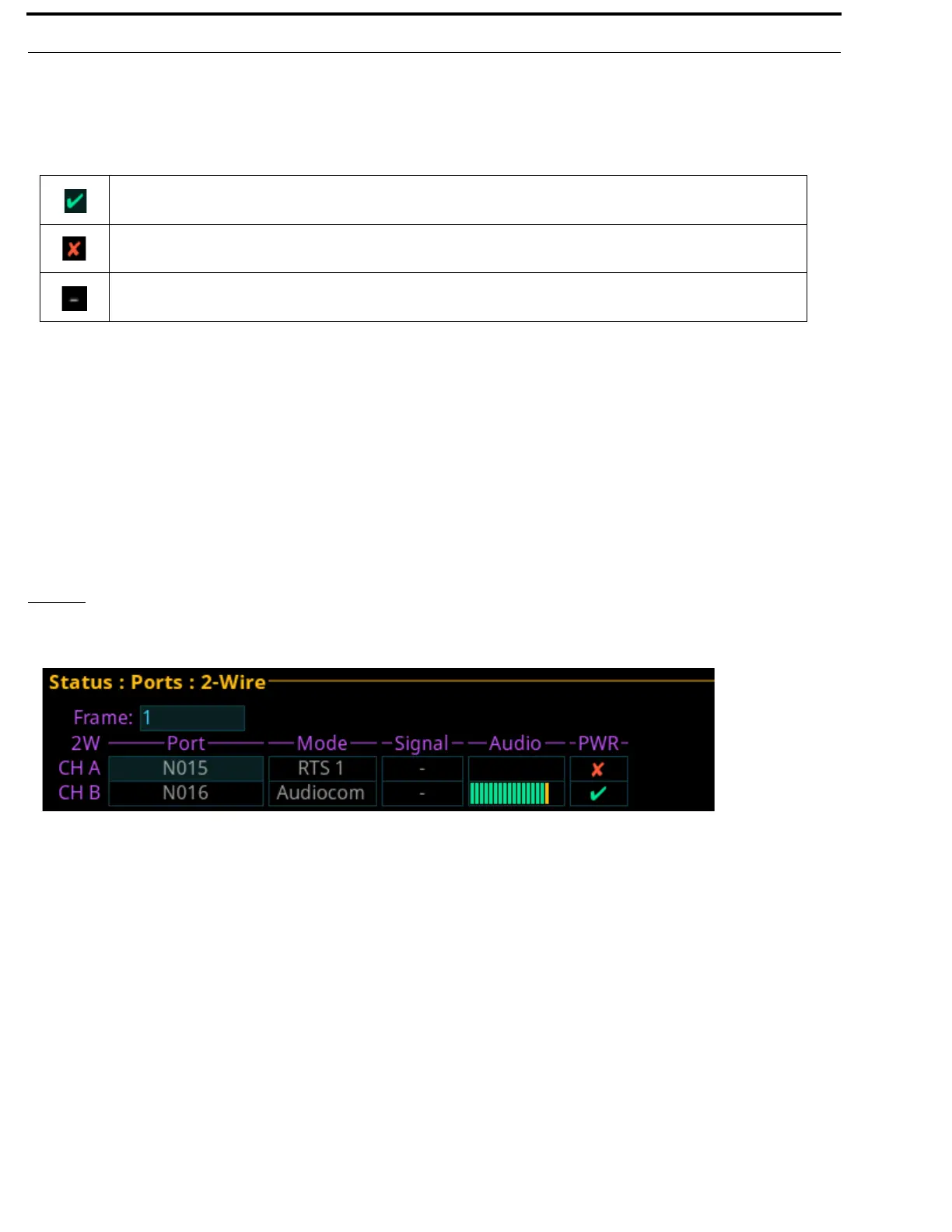 The 2-Wire screen displays status information for the two connectors, CH A and CH B, located on the rear panel of ODIN.