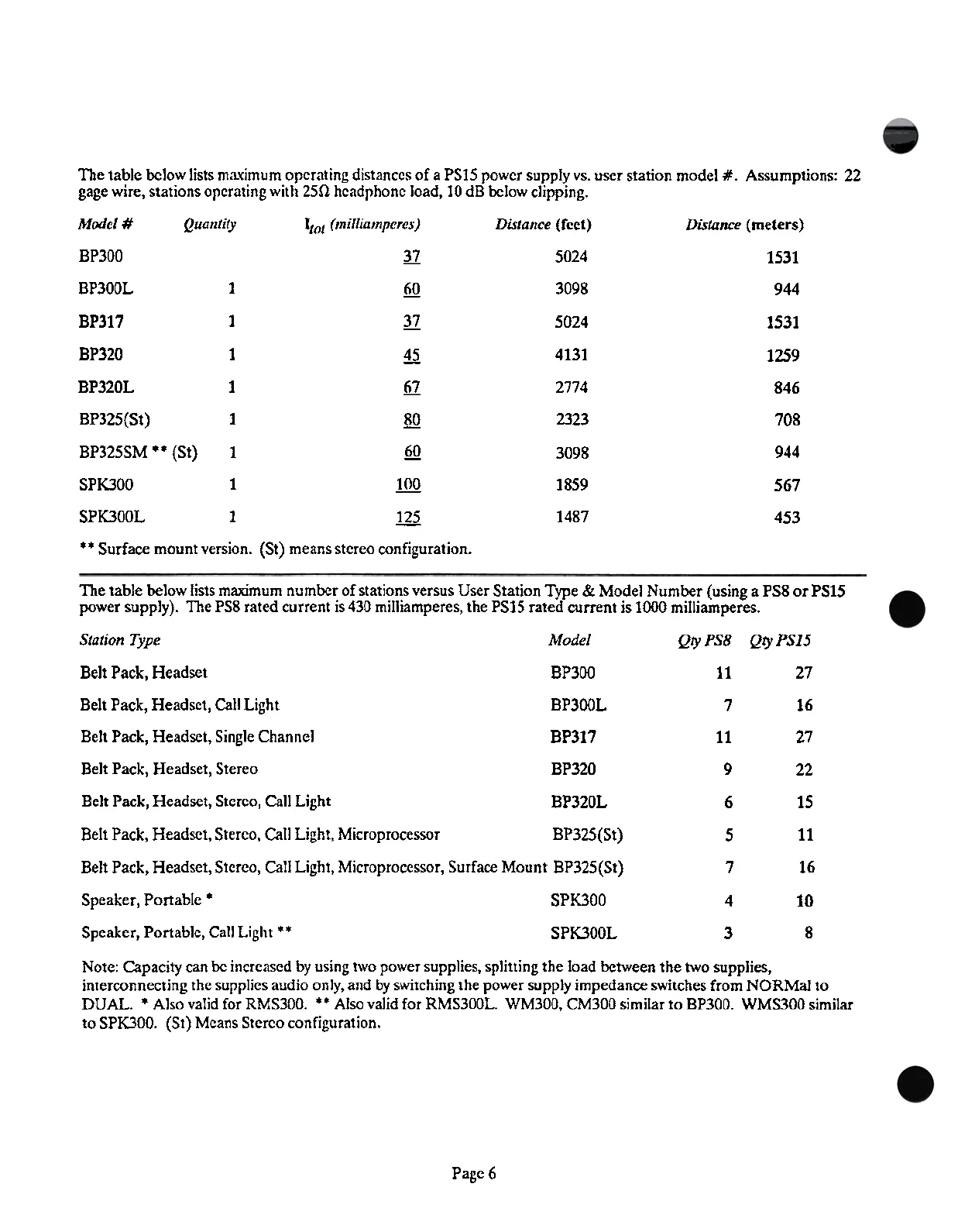 The table bclow lists maximum orcrating distanccs of a PS15 powcr supply vs. user station model # .Assumptions: 22