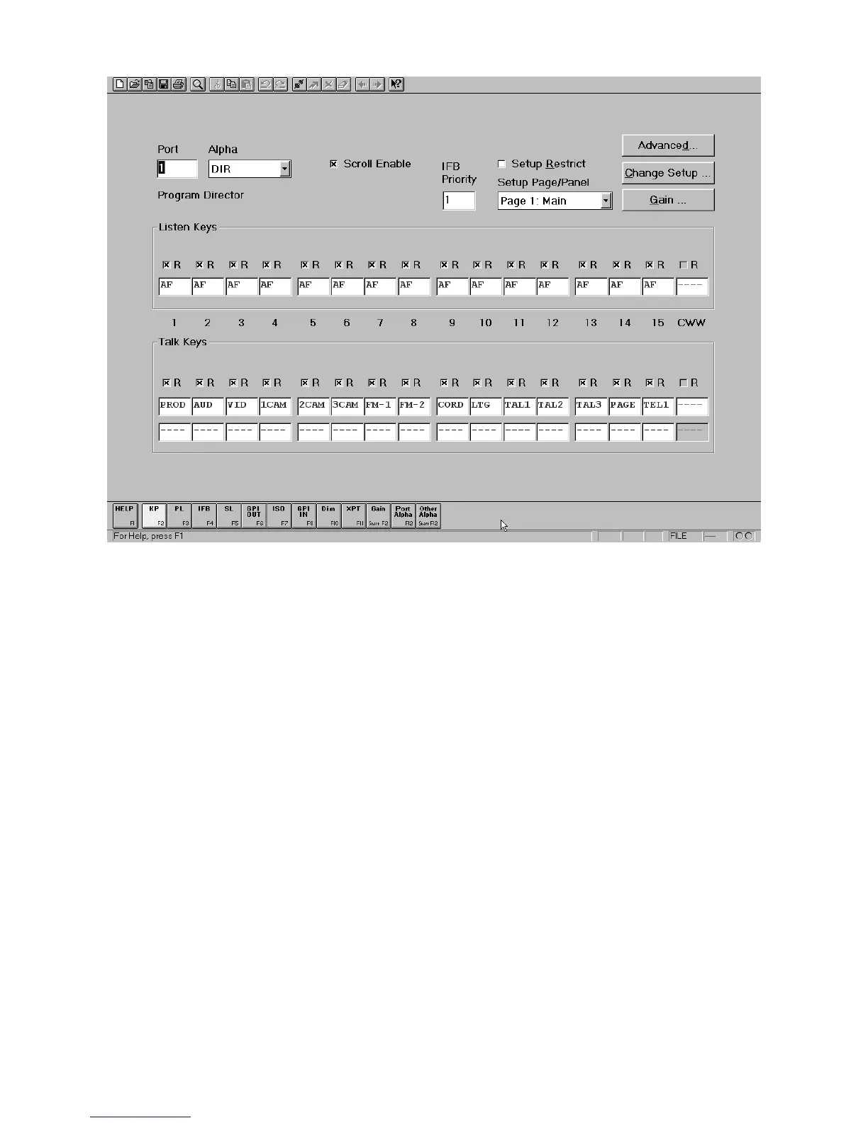 Figure 4. The keypanel setup screen for the director’s keypanel in the example file 1studio.zus