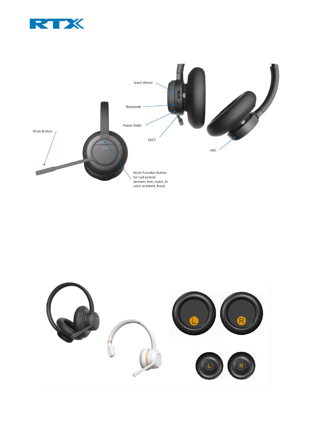 The images below represent the styling of the headsets from the RTX725x series (Fig.9). The product is