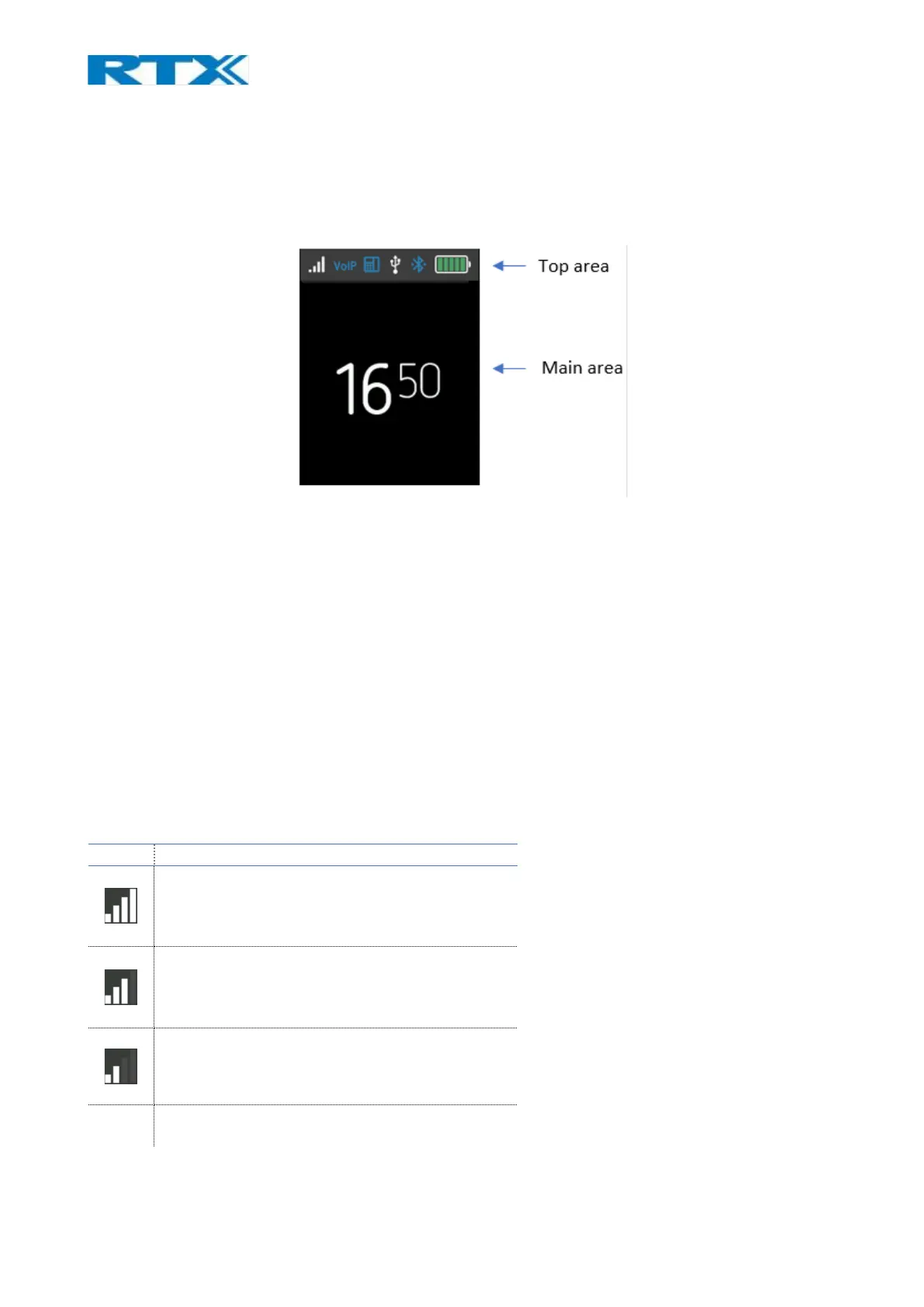 The idle screen is represented by 2 UI panels (Fig.17). The first, referred to as Top area, contains a status bar