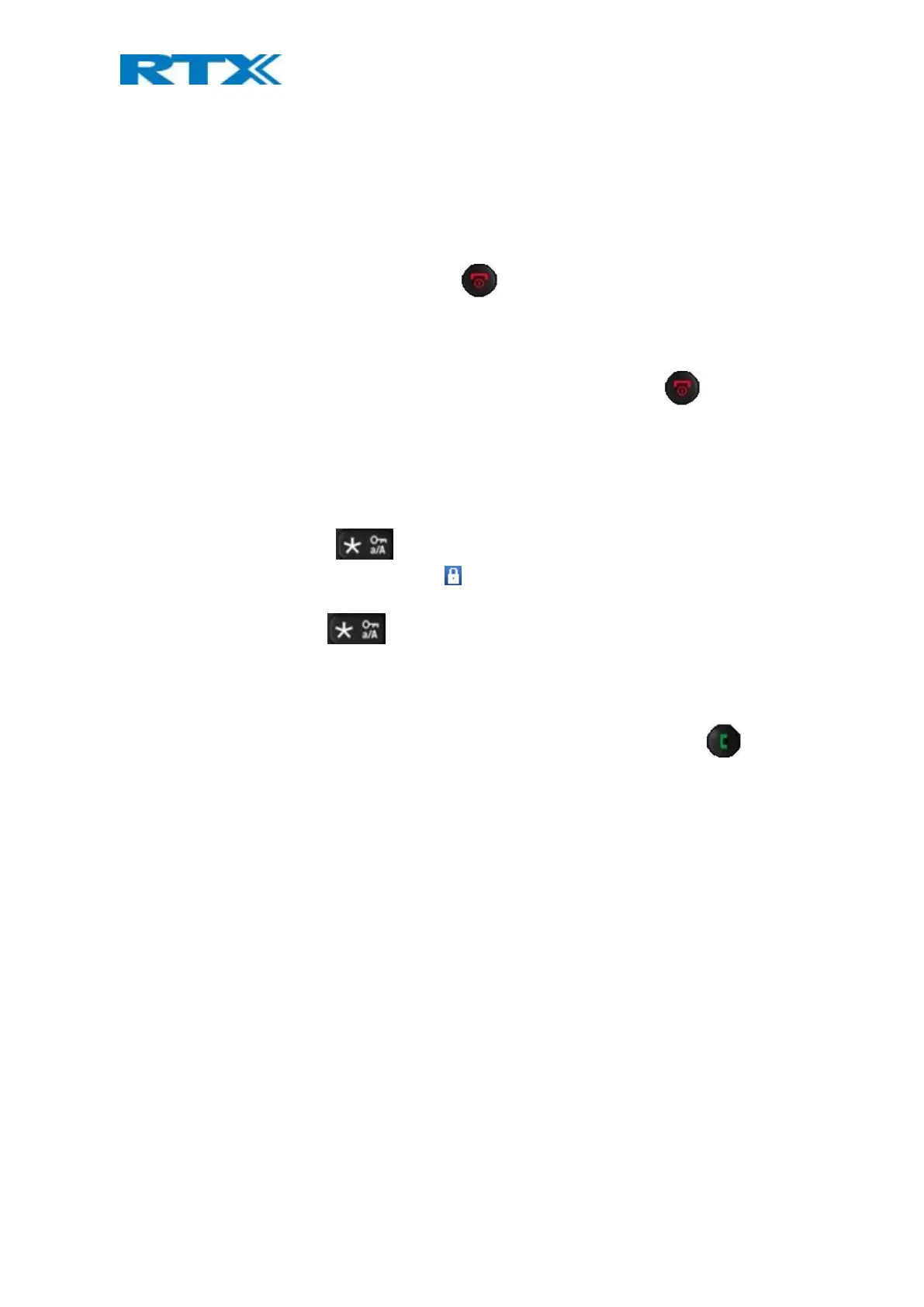 To lock the keypad long-press the in idle, and the following text message is displayed: “Press and hold
