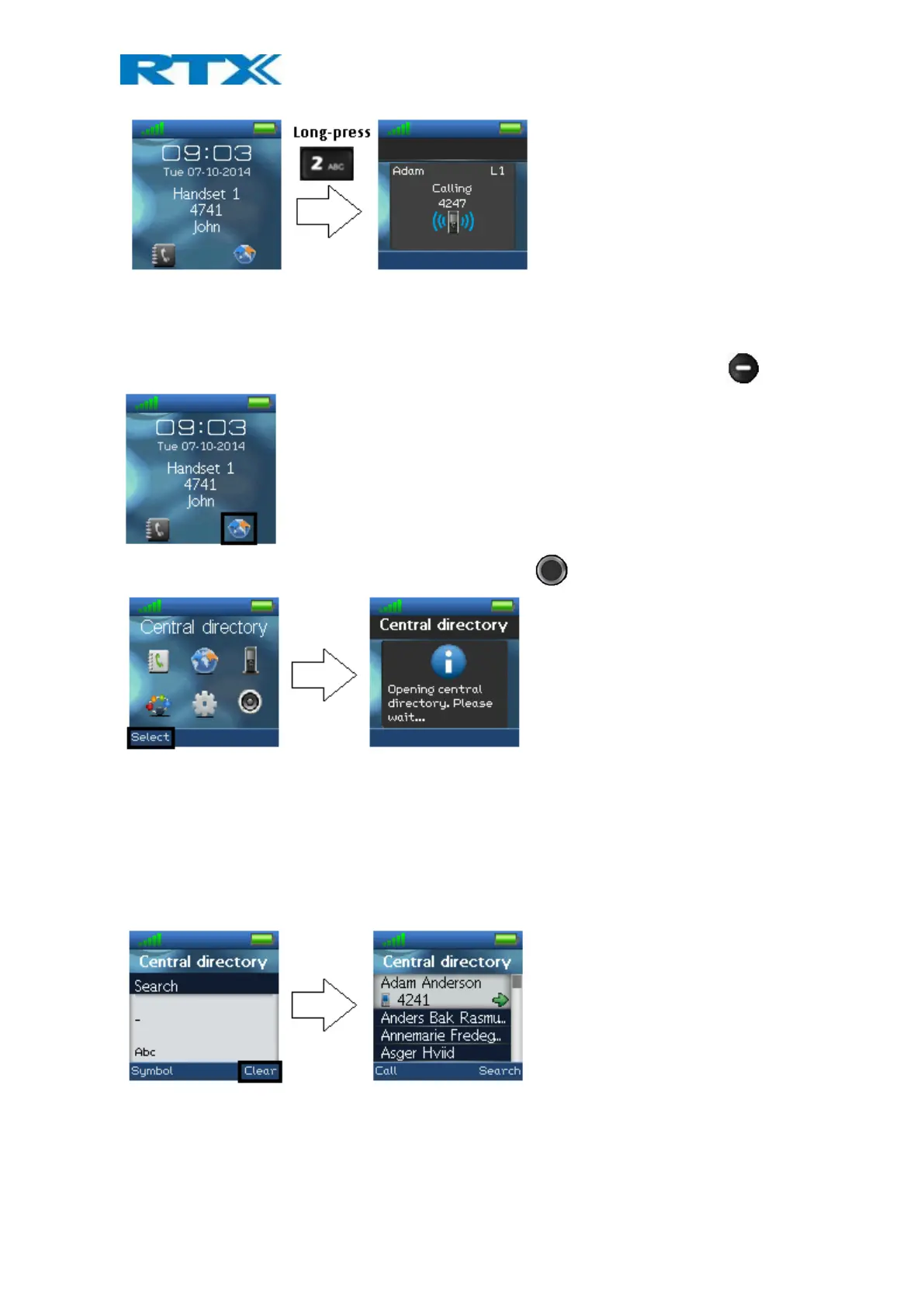 NOTE: When the central directory is in LDAP mode pressing right softkey “Search”, the handset will return to the
