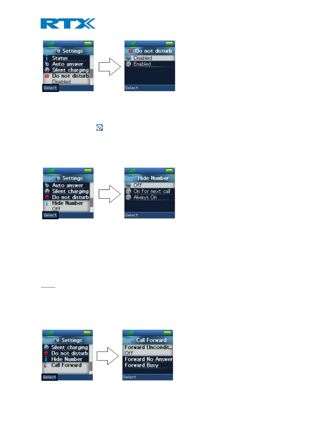 If this feature is enabled, all incoming calls to the handset will be forwarded to the number setup in “Forward To”