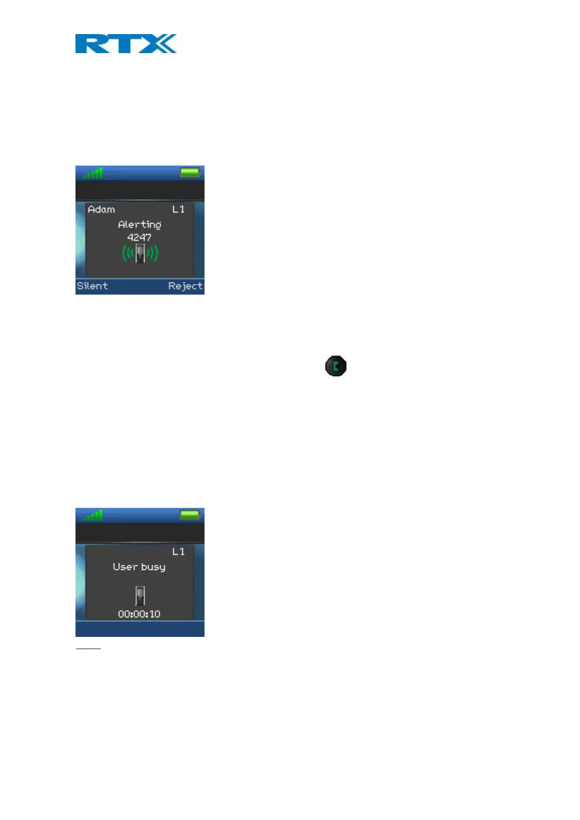 way the calling party will receive a busy tone, and “User busy” displayed on the screen as shown in the picture