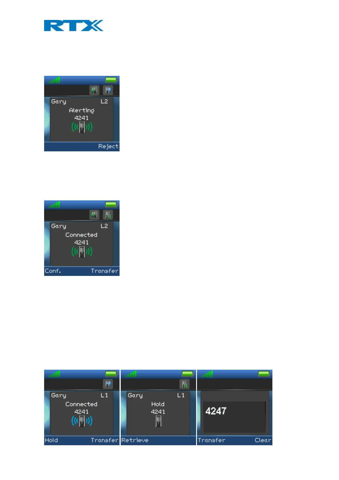 In this case the call waiting is from party 4241 (called Gary in the local phonebook).