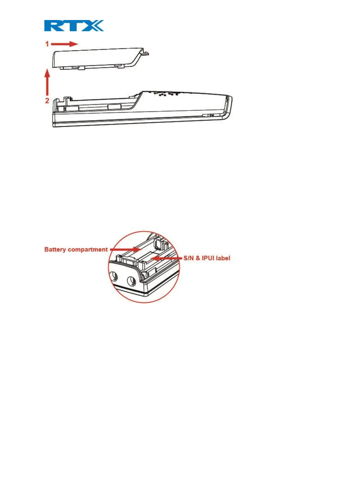 The serial number and IPEI/IPUI number of each handset are found either on a label which is placed behind the