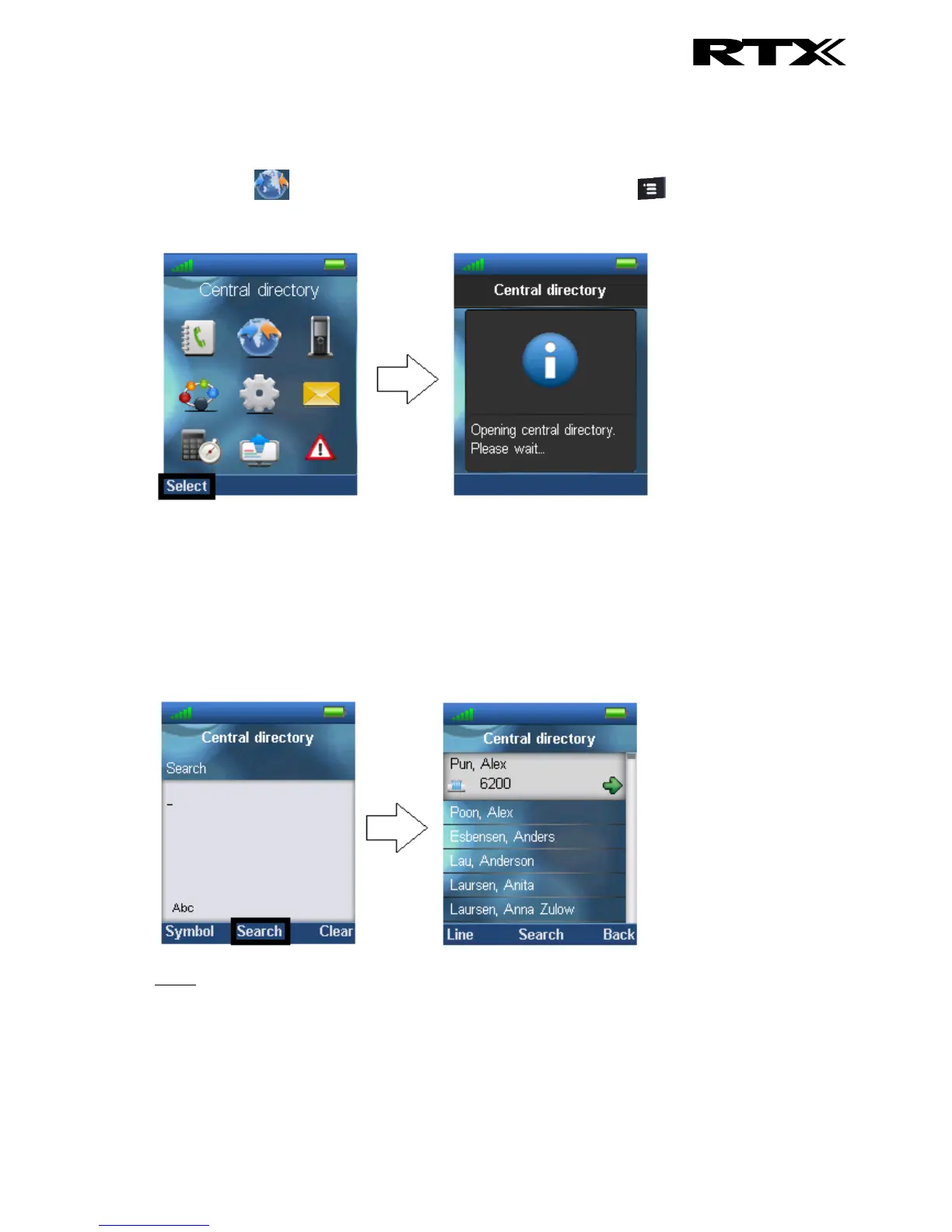 When set to LDAP mode, opening the central directory will show a search screen as displayed in the
