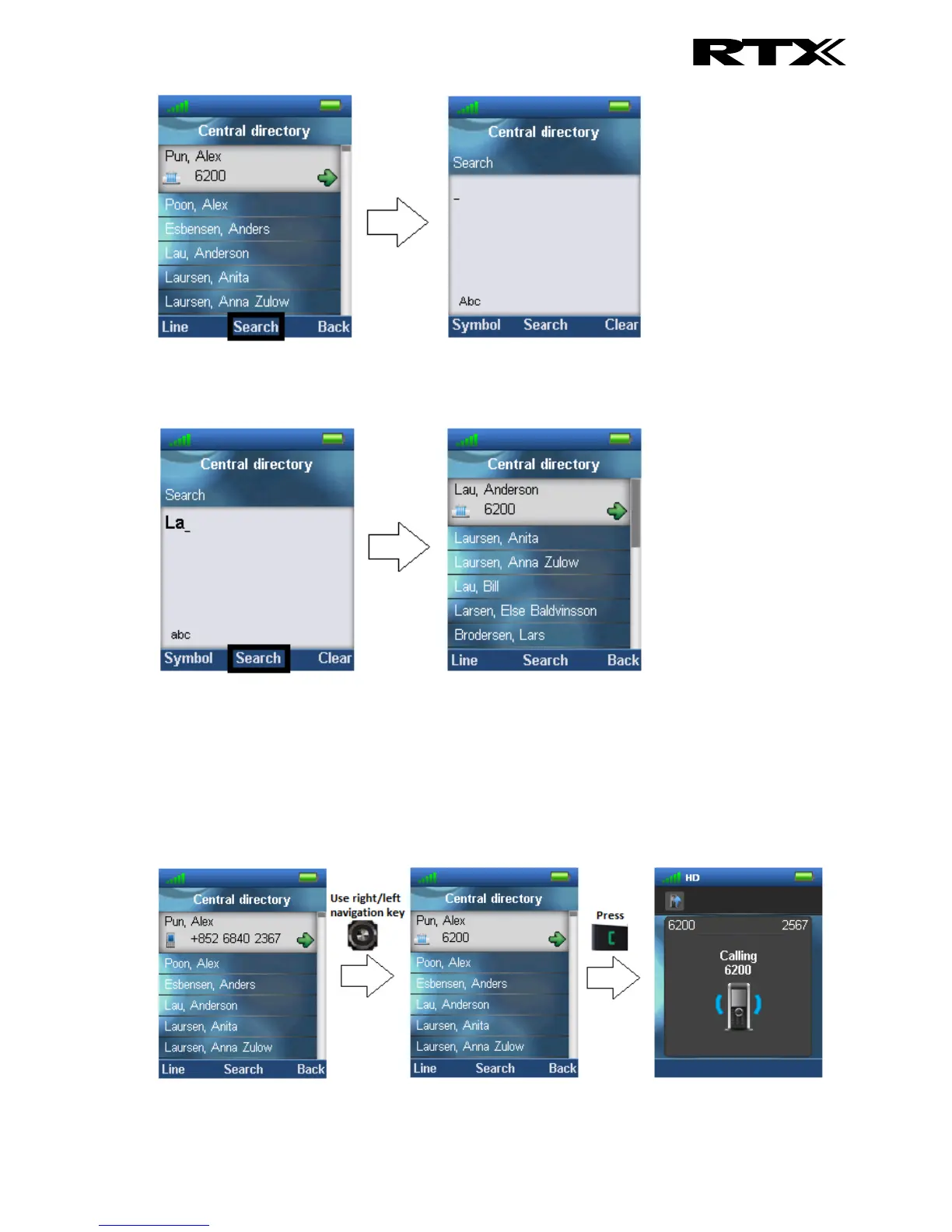 To call a contact from the central directory press the green “Off-hook” button, and the contact number