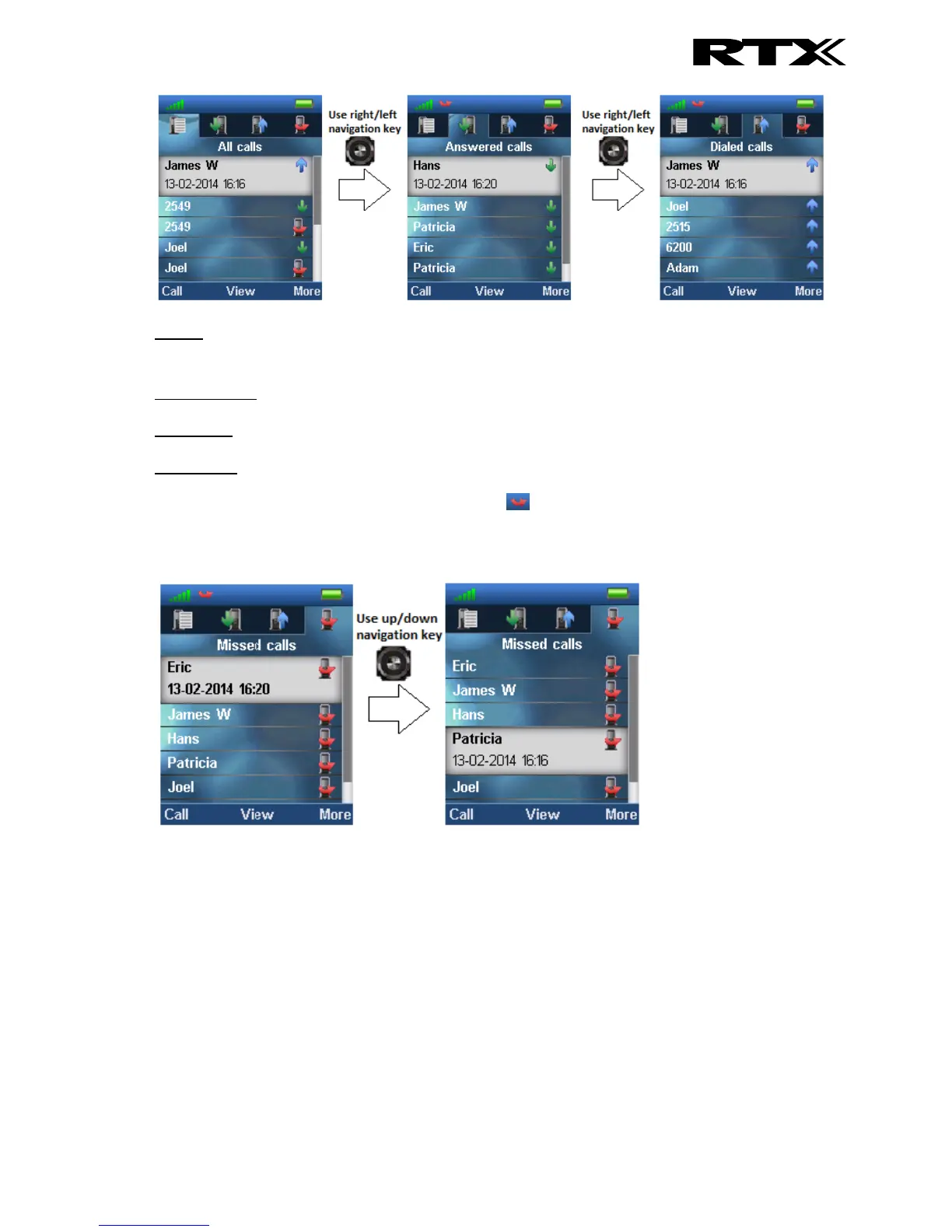 Using the up/down navigation keys scrolls through the list of missed calls. When the entries has been
