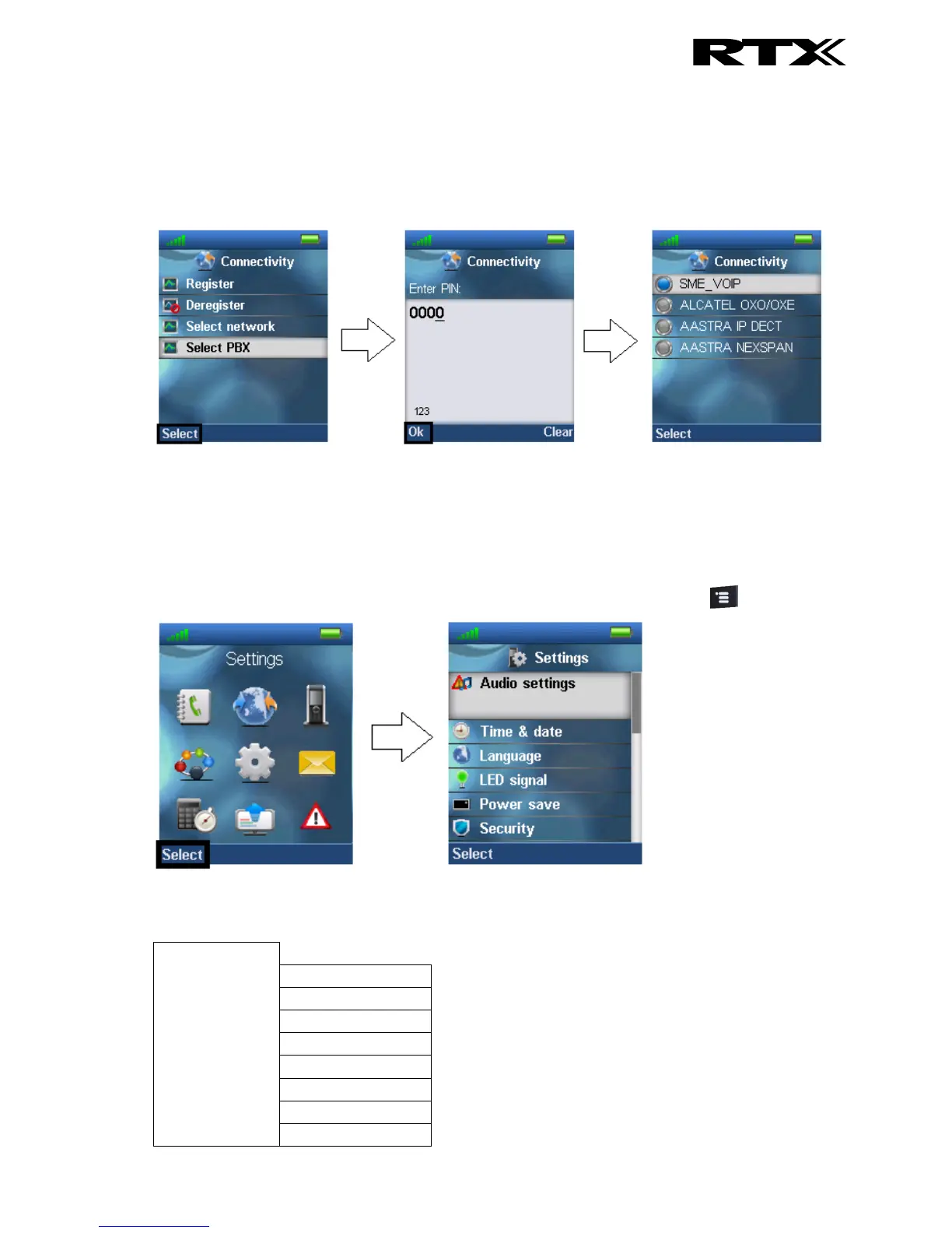 In the “Select PBX” menu it is possible to select another PBX for the handset to use.