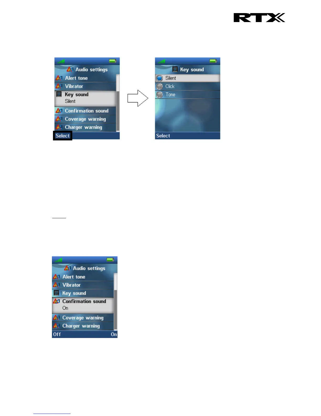 If this feature is chosen, there will not be heard any sounds when pressing the keys on handset.