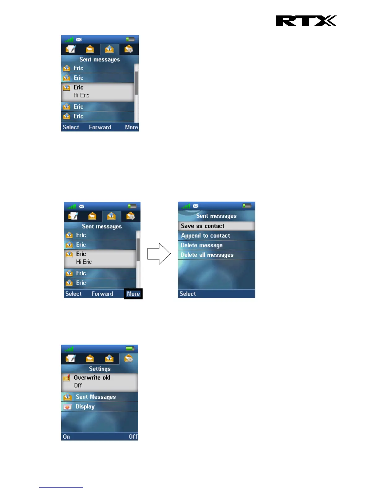 pressing the middle softkey, the message is opened, and it is possible to forward it to another handset