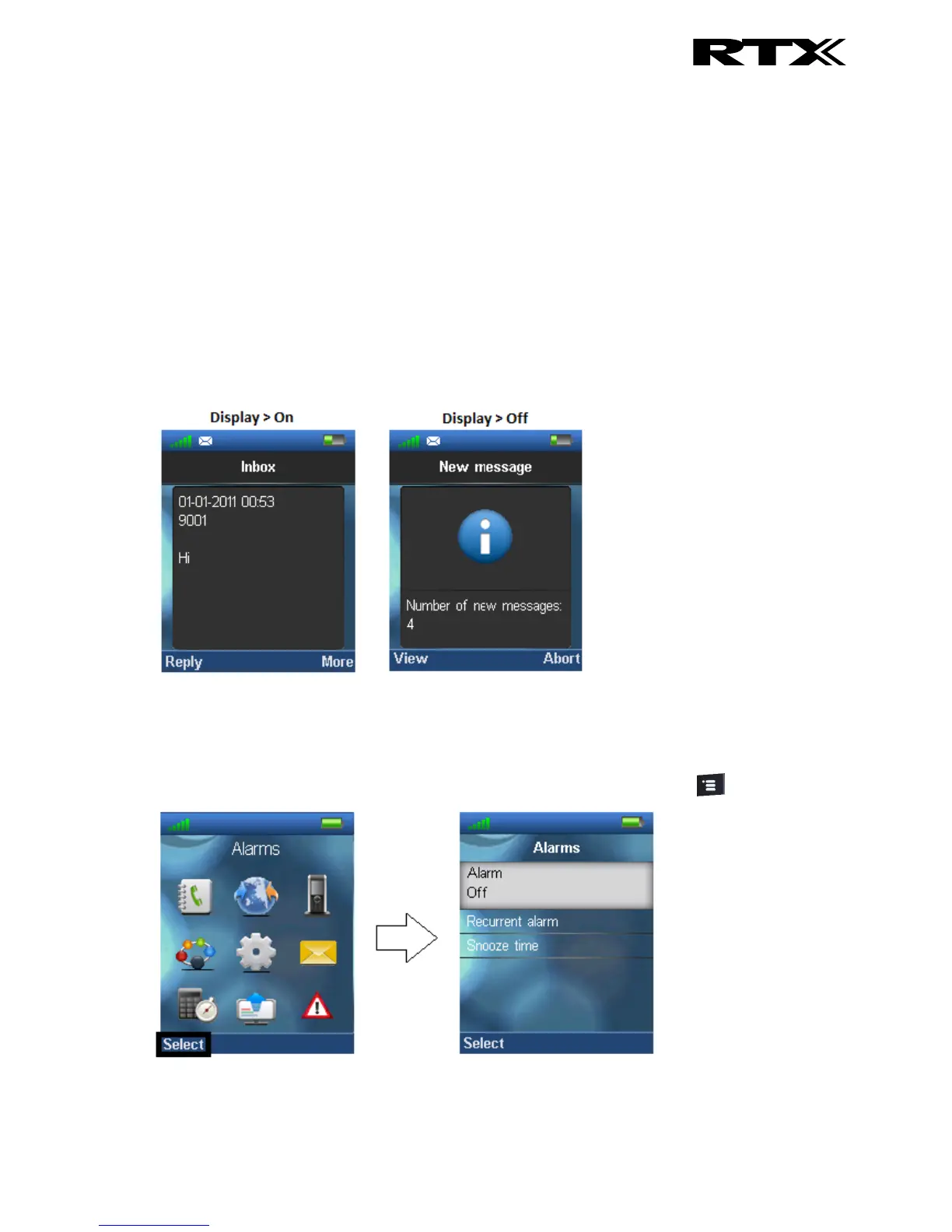 The “Alarm” menu is entered through the menu by pressing the activity menu key in idle.