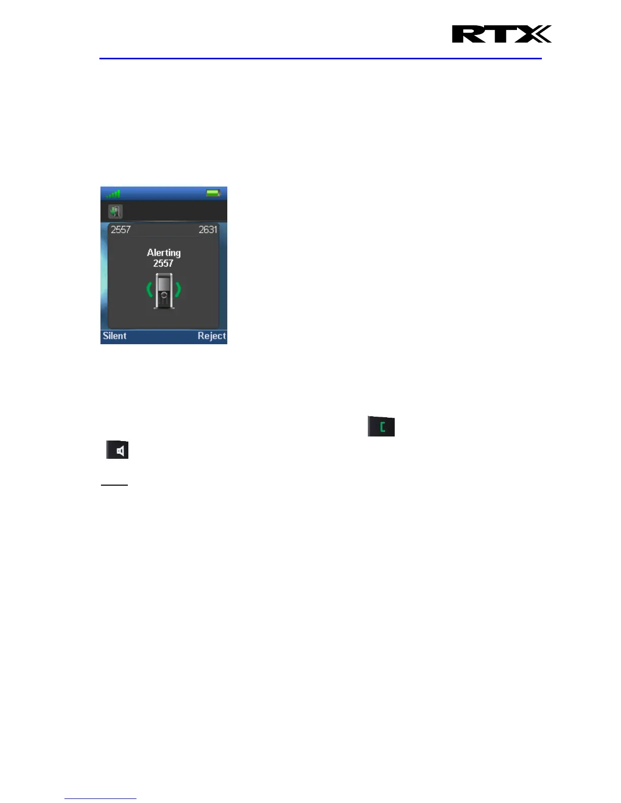 As the handset receives an incoming call an alerting screen will be displayed as displayed below. This